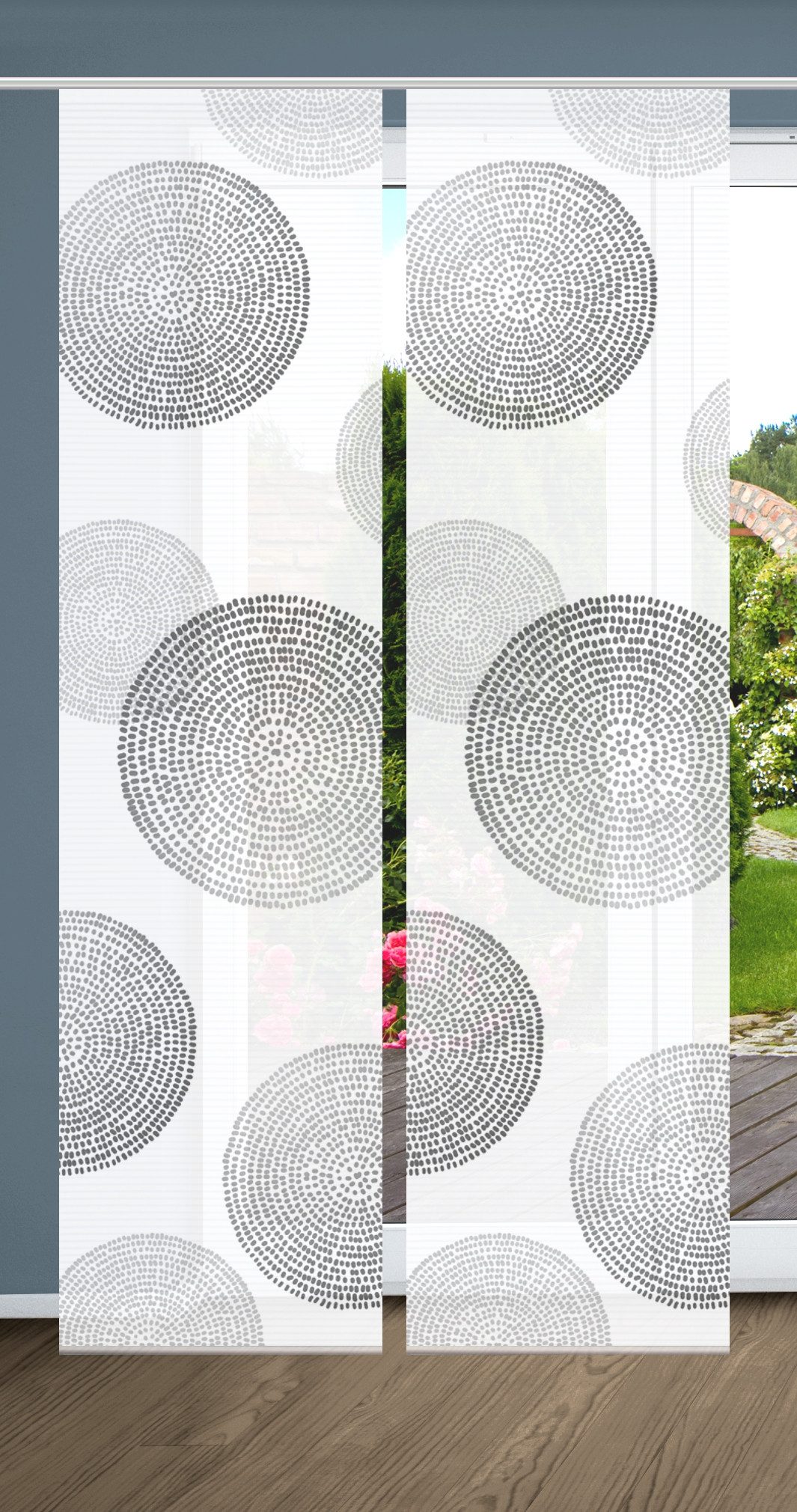 Hinweis Dekoration | Die angegebenen Maße sind die fertig dekorierten Maße. Eine Schiebegardine ist eine schmale, glatt hängende Stoffbahn, die sich sowohl als Sichtschutz als auch zur Raumteilung eignet. Durch die Schiebetechnik sind Schiebegardinen sehr flexibel einsetzbar. |
