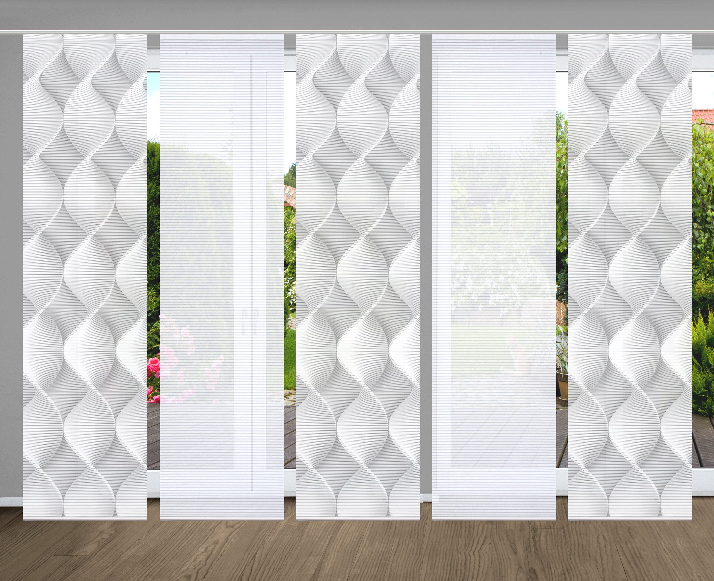 Hinweis Dekoration | Die angegebenen Maße sind die fertig dekorierten Maße. Eine Schiebegardine ist eine schmale, glatt hängende Stoffbahn, die sich sowohl als Sichtschutz als auch zur Raumteilung eignet. Durch die Schiebetechnik sind Schiebegardinen sehr flexibel einsetzbar. |