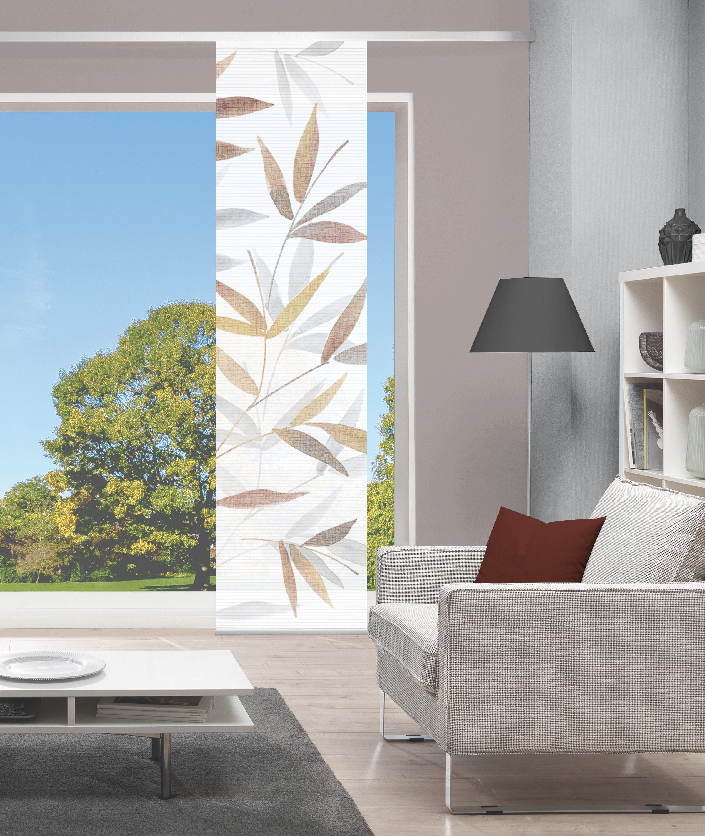 Hinweis Dekoration | Die angegebenen Maße sind die fertig dekorierten Maße. Eine Schiebegardine ist eine schmale, glatt hängende Stoffbahn, die sich sowohl als Sichtschutz als auch zur Raumteilung eignet. Durch die Schiebetechnik sind Schiebegardinen sehr flexibel einsetzbar. |