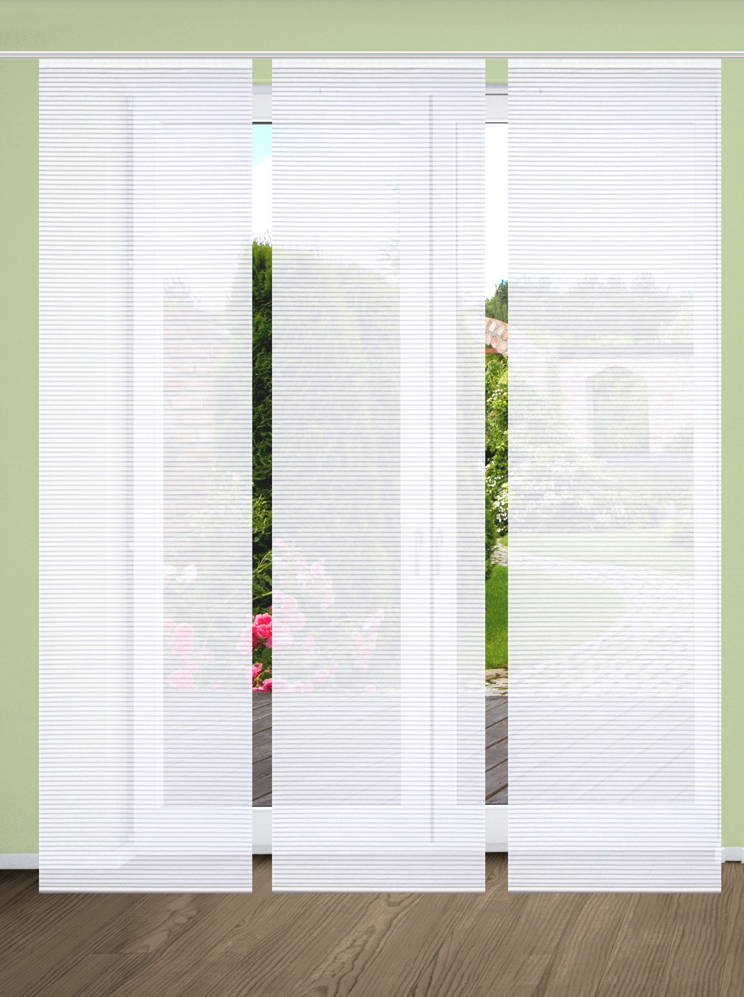 Hinweis Dekoration | Die angegebenen Maße sind die fertig dekorierten Maße. Eine Schiebegardine ist eine schmale, glatt hängende Stoffbahn, die sich sowohl als Sichtschutz als auch zur Raumteilung eignet. Durch die Schiebetechnik sind Schiebegardinen sehr flexibel einsetzbar. |
