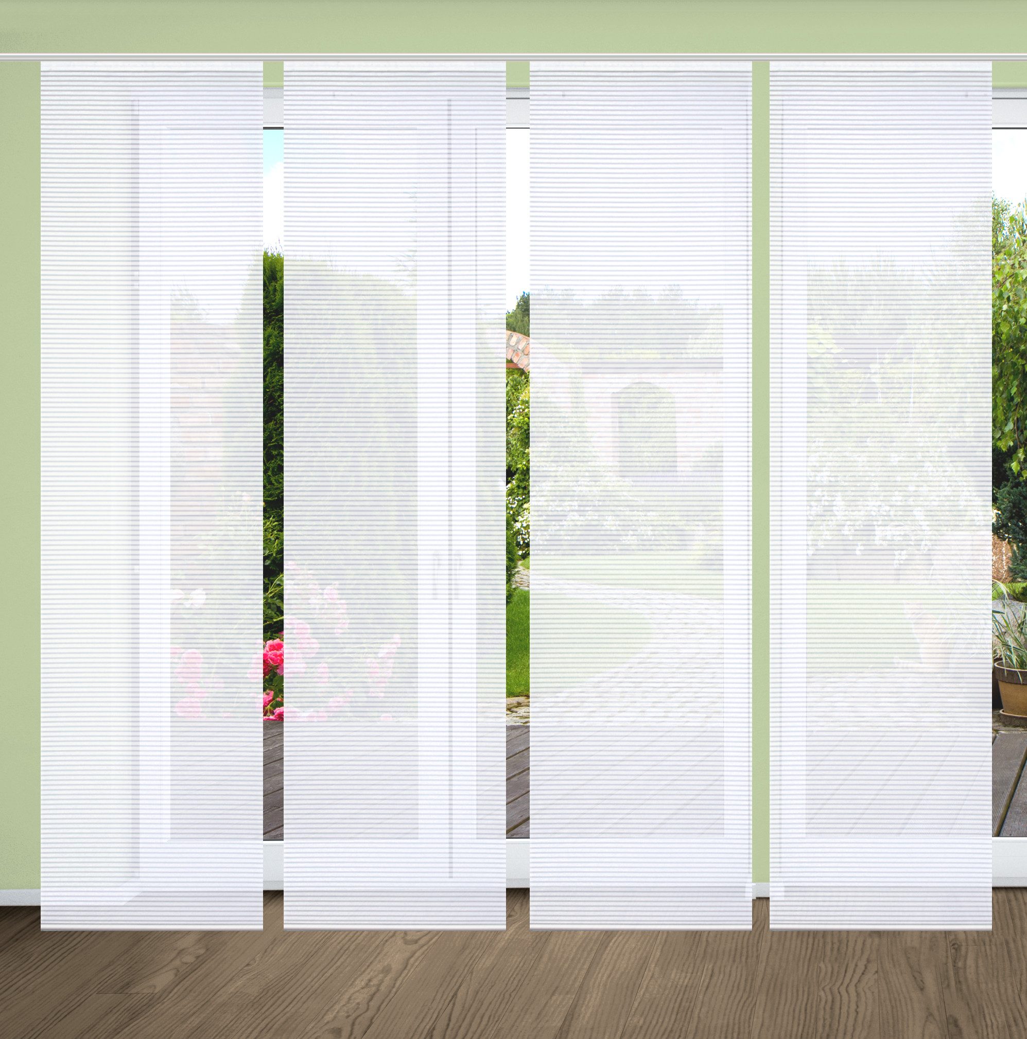 Hinweis Dekoration | Die angegebenen Maße sind die fertig dekorierten Maße. Eine Schiebegardine ist eine schmale, glatt hängende Stoffbahn, die sich sowohl als Sichtschutz als auch zur Raumteilung eignet. Durch die Schiebetechnik sind Schiebegardinen sehr flexibel einsetzbar. |