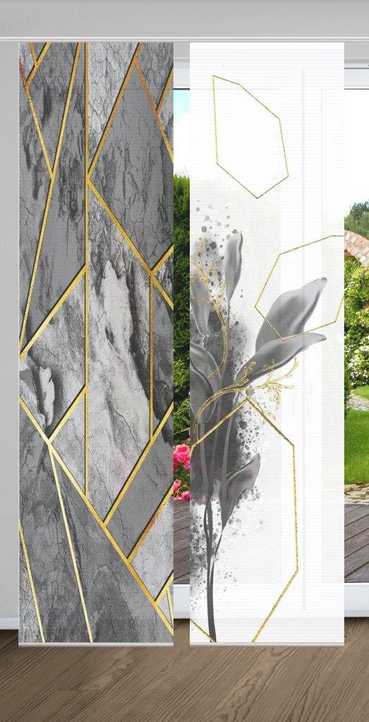 Hinweis Dekoration | Die angegebenen Maße sind die fertig dekorierten Maße. Eine Schiebegardine ist eine schmale, glatt hängende Stoffbahn, die sich sowohl als Sichtschutz als auch zur Raumteilung eignet. Durch die Schiebetechnik sind Schiebegardinen sehr flexibel einsetzbar. |
