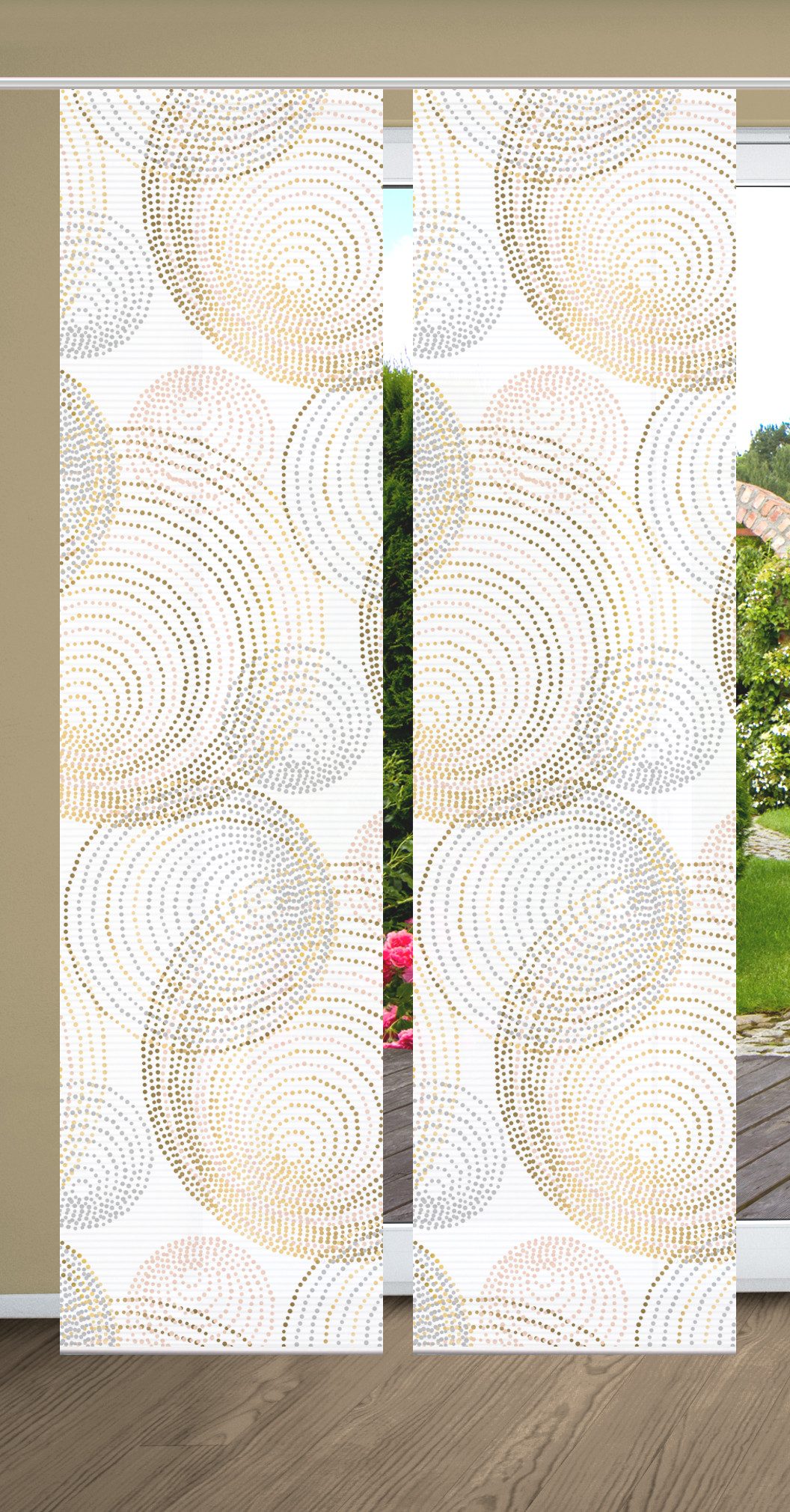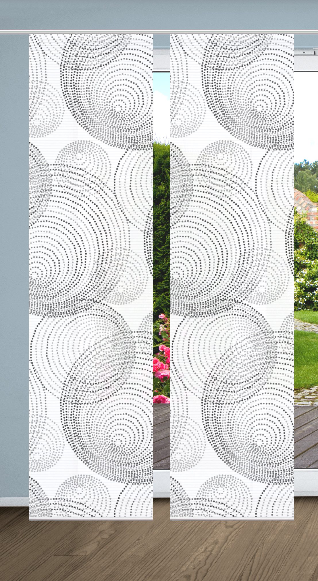 Hinweis Dekoration | Die angegebenen Maße sind die fertig dekorierten Maße. Eine Schiebegardine ist eine schmale, glatt hängende Stoffbahn, die sich sowohl als Sichtschutz als auch zur Raumteilung eignet. Durch die Schiebetechnik sind Schiebegardinen sehr flexibel einsetzbar. |