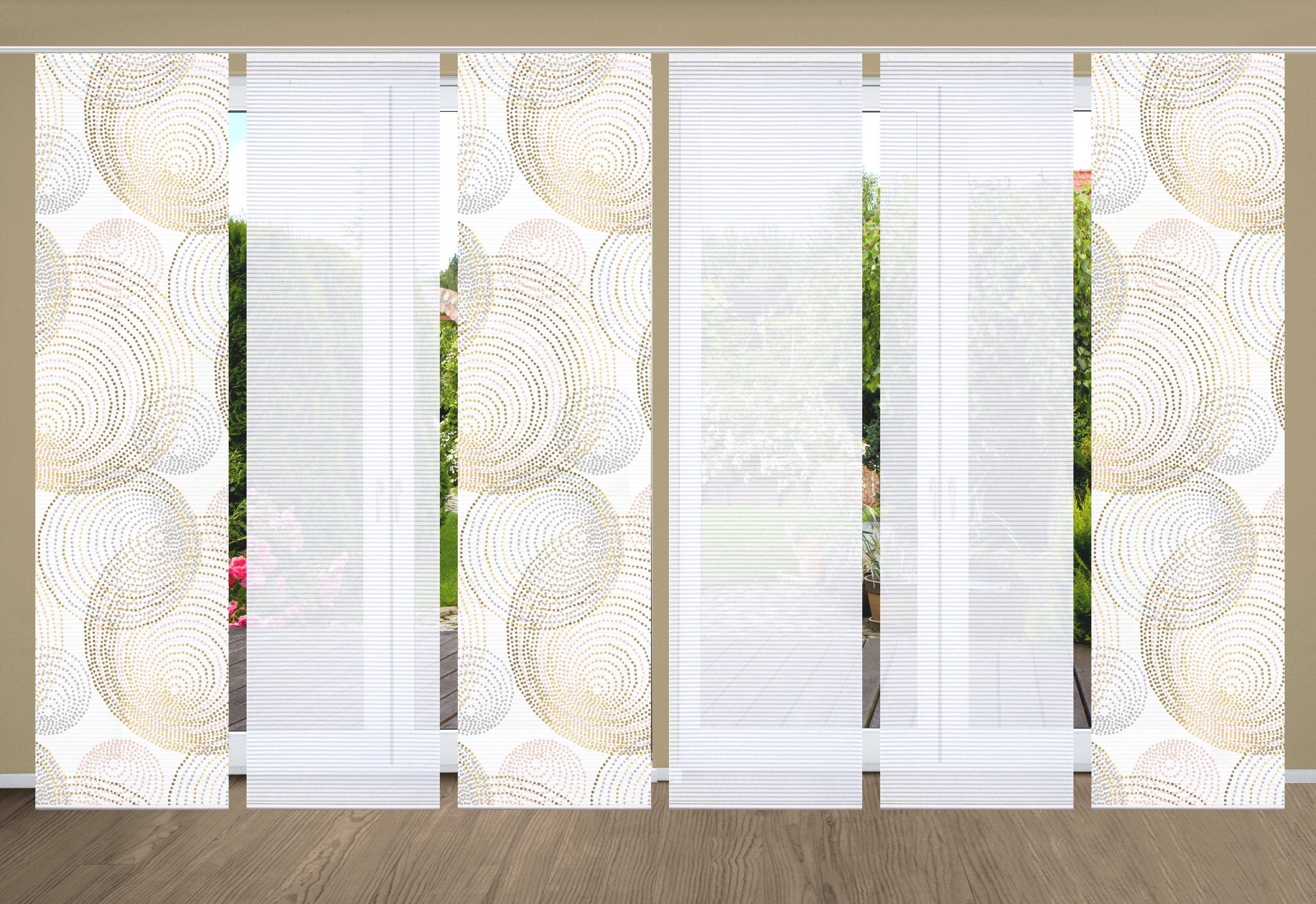 Hinweis Dekoration | Die angegebenen Maße sind die fertig dekorierten Maße. Eine Schiebegardine ist eine schmale, glatt hängende Stoffbahn, die sich sowohl als Sichtschutz als auch zur Raumteilung eignet. Durch die Schiebetechnik sind Schiebegardinen sehr flexibel einsetzbar. |