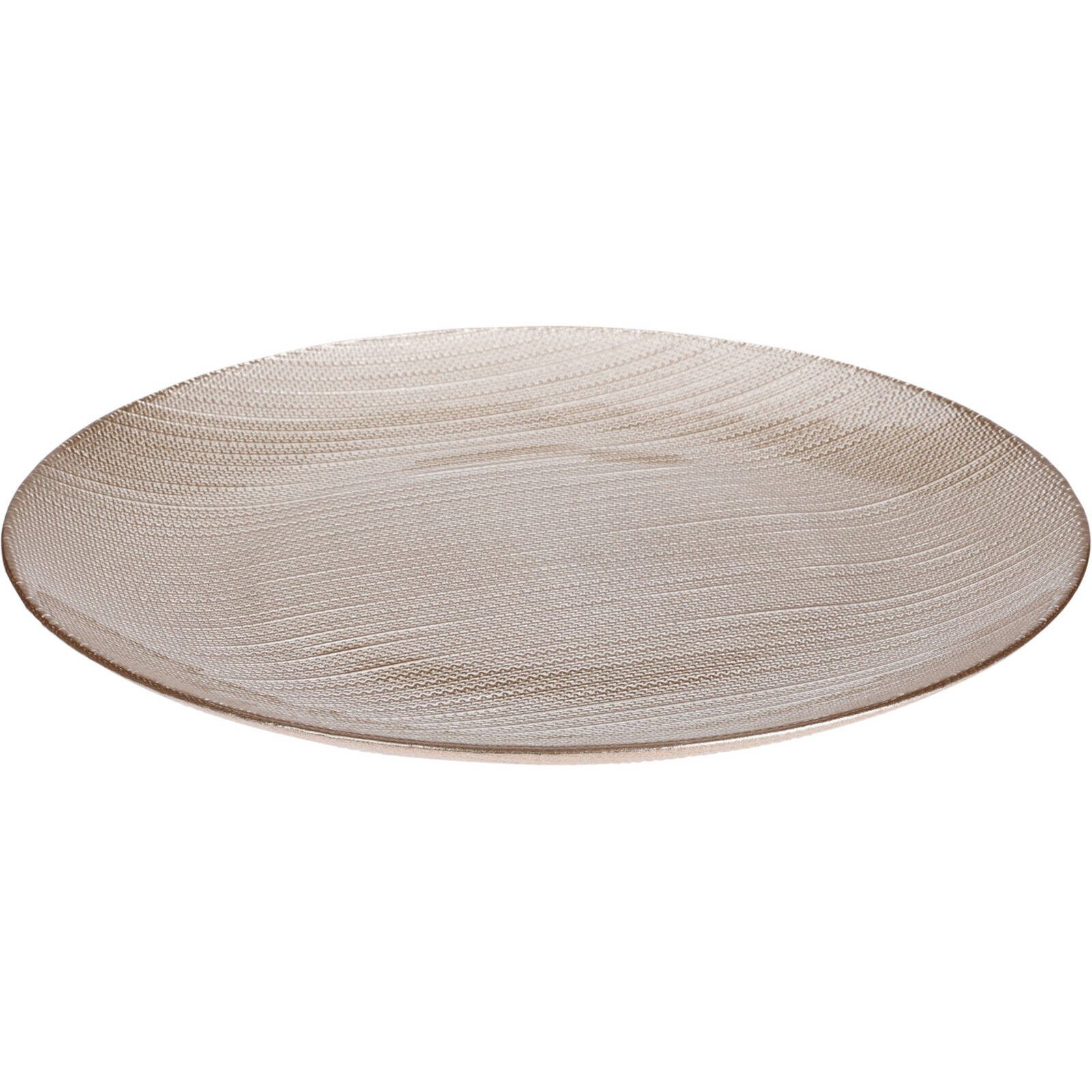 Eleganter flacher Teller 28 cm aus Glas in der Farbe metallic Champagner - ein außergewöhnliches Design, das jede Tischdecke bereichert.
