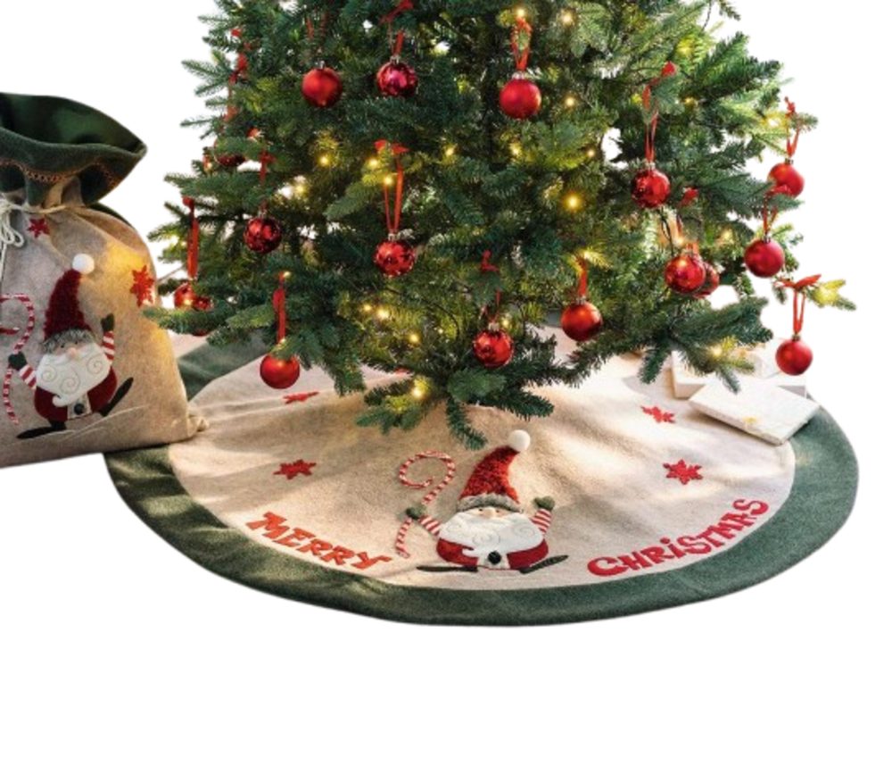 Verschönere den Platz unter dem Baum mit dieser stilvollen Unterlage und schaffe eine weihnachtliche Stimmung. Hergestellt aus 100% Polyester verziert mit Filz, verschiedenen Textilien, Metallglöckchen und Klettverschlüssen.