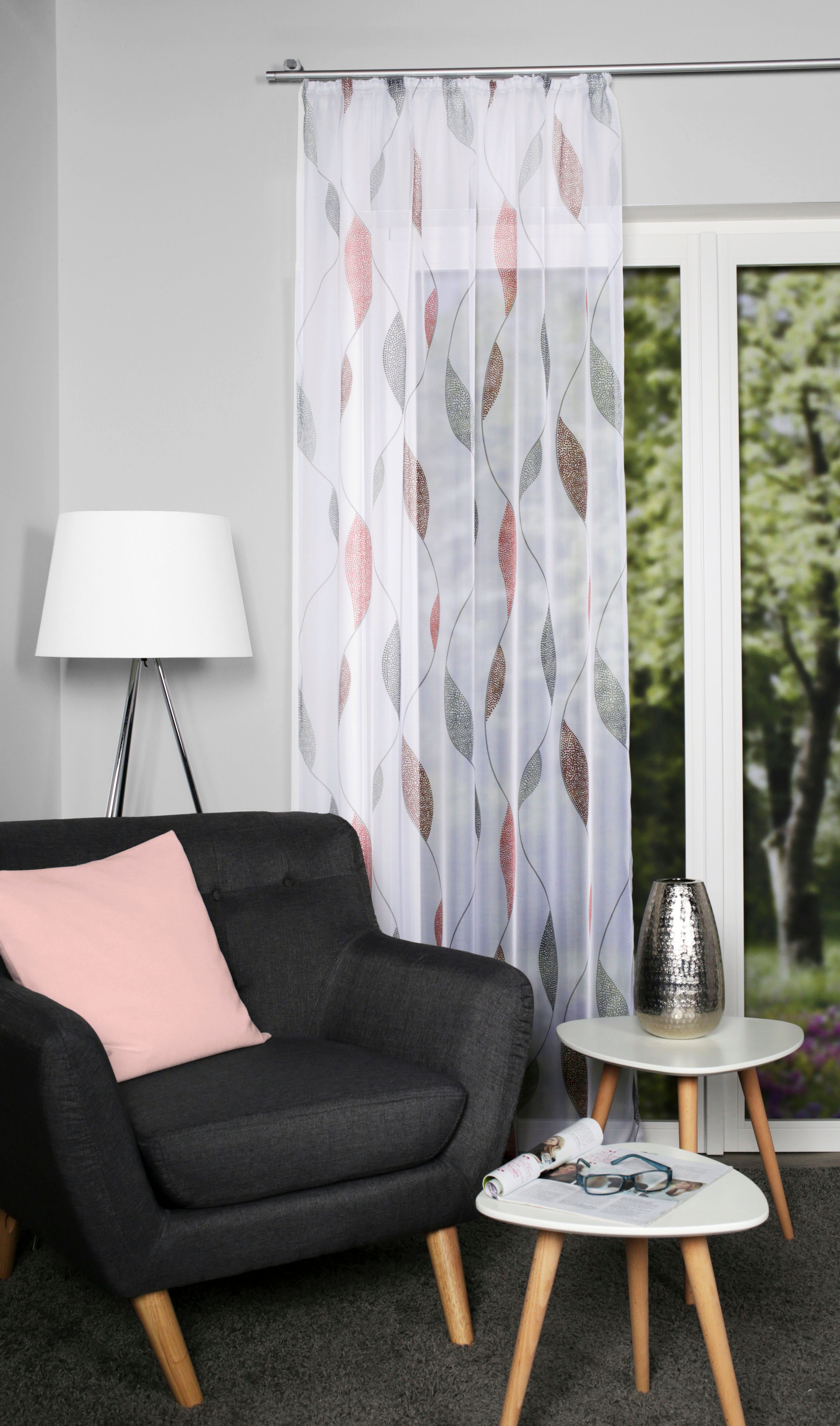 Hinweis Materialart | Eine Voilequalität bezeichnet ein zartes, luftiges Gewebe, das Lichtmilderung ohne Verdunkeln bietet. Bei farbigen Voiles bestimmen Sie selbst durch die Stärke des Kräuselns den gewünschten Farbeindruck zwischen hell (bei nur leichter Kräuselung) und intensiv farbig (bei stärkerer Kräuselung). Voile eignet sich durch seine variantenreichen Farben und Dessins hervorragend für Freihand-Dekorationen zur individuellen Fenster- und Raumgestaltung. |