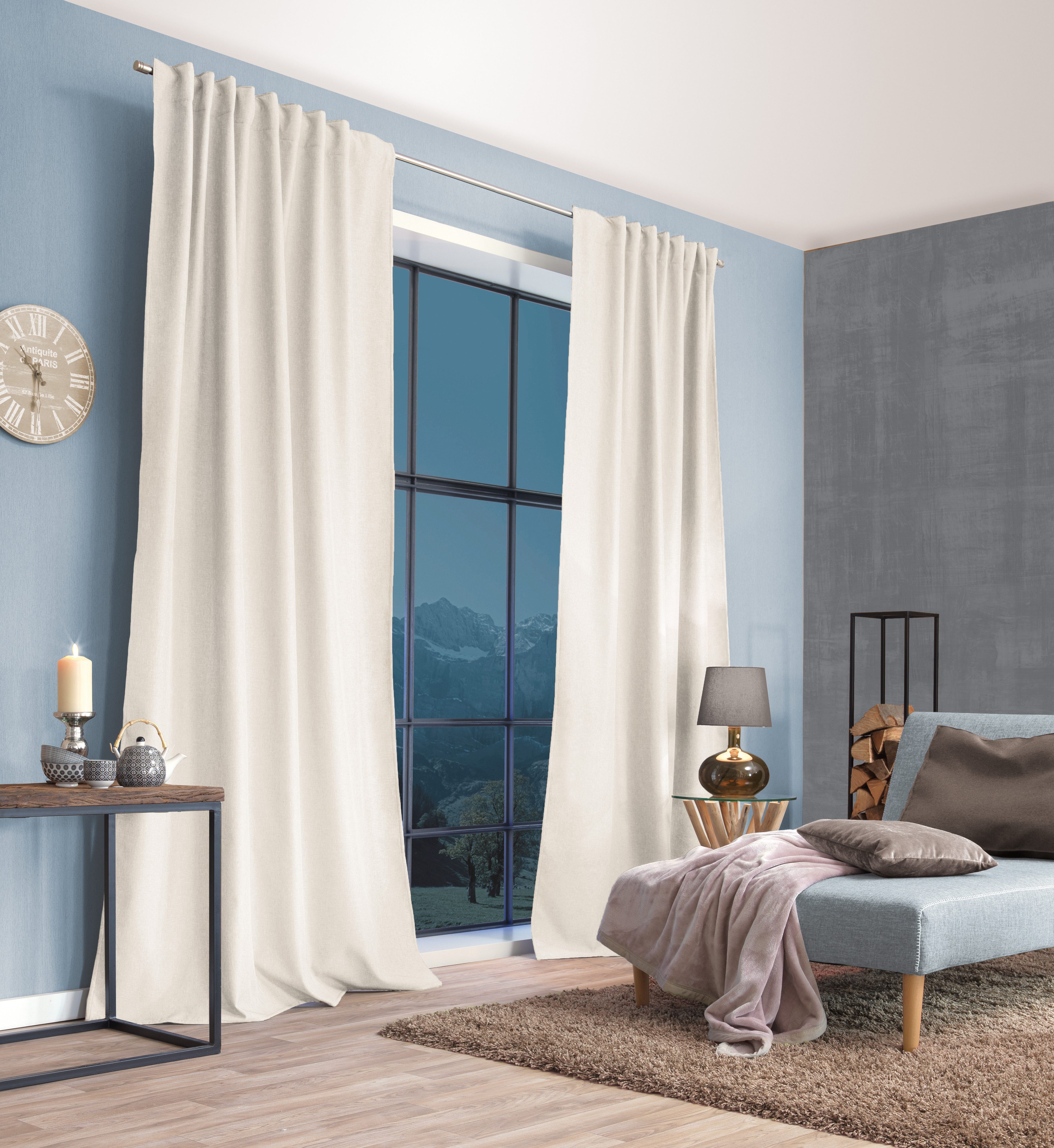 Hinweis Materialart | Chenillequalität bezeichnet einen Vorhangstoff, der aus voluminösem Garn gewebt wird. Das schwere Gewebe mit samtiger Oberfläche bietet sowohl Kälte- als auch Lärmschutz. |