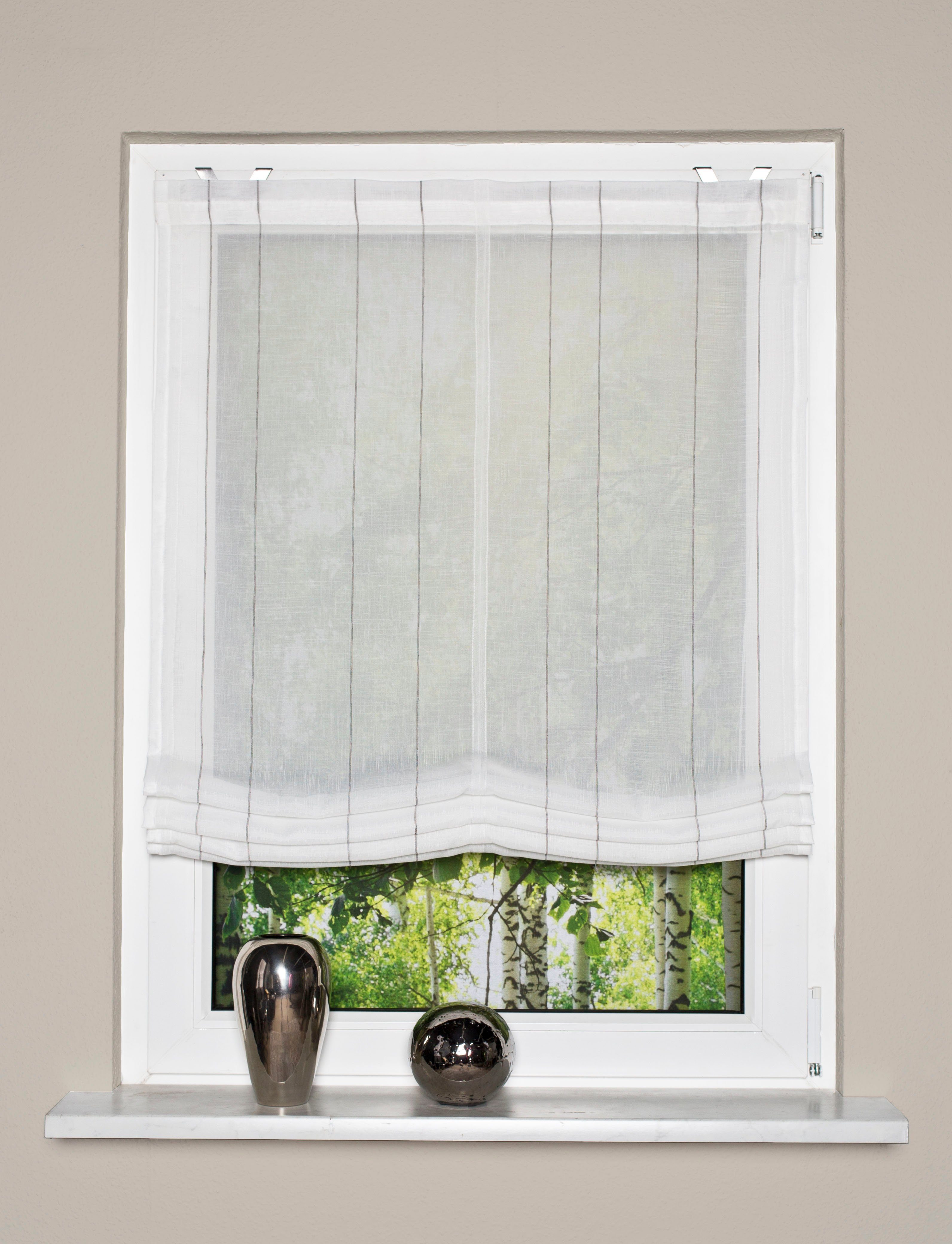 Hinweis Raffung | Raffung erfolgt mittels seitlicher Zugschnüre und kann auf jeder beliebigen Höhe festgestellt werden. Hierzu wird ein Schnurfeststeller mit Schraube und Dübel in der Wand montiert. |