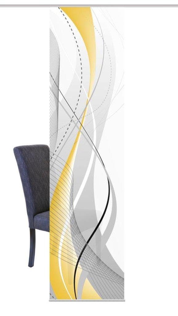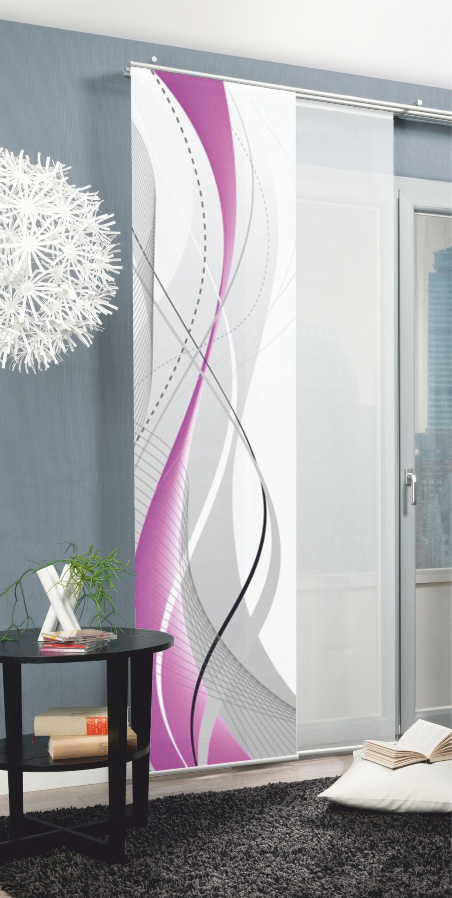 Diese Schiebewand wird inkl. komplettem Zubehör geliefert: hochwertiger Paneelwagen und Klemmschiene aus Aluminium als Beschwerungselement. Durch die lasergeschnittenen Seiten ist der Flächenvorhang leicht selbst in der Höhe individuell kürzbar.