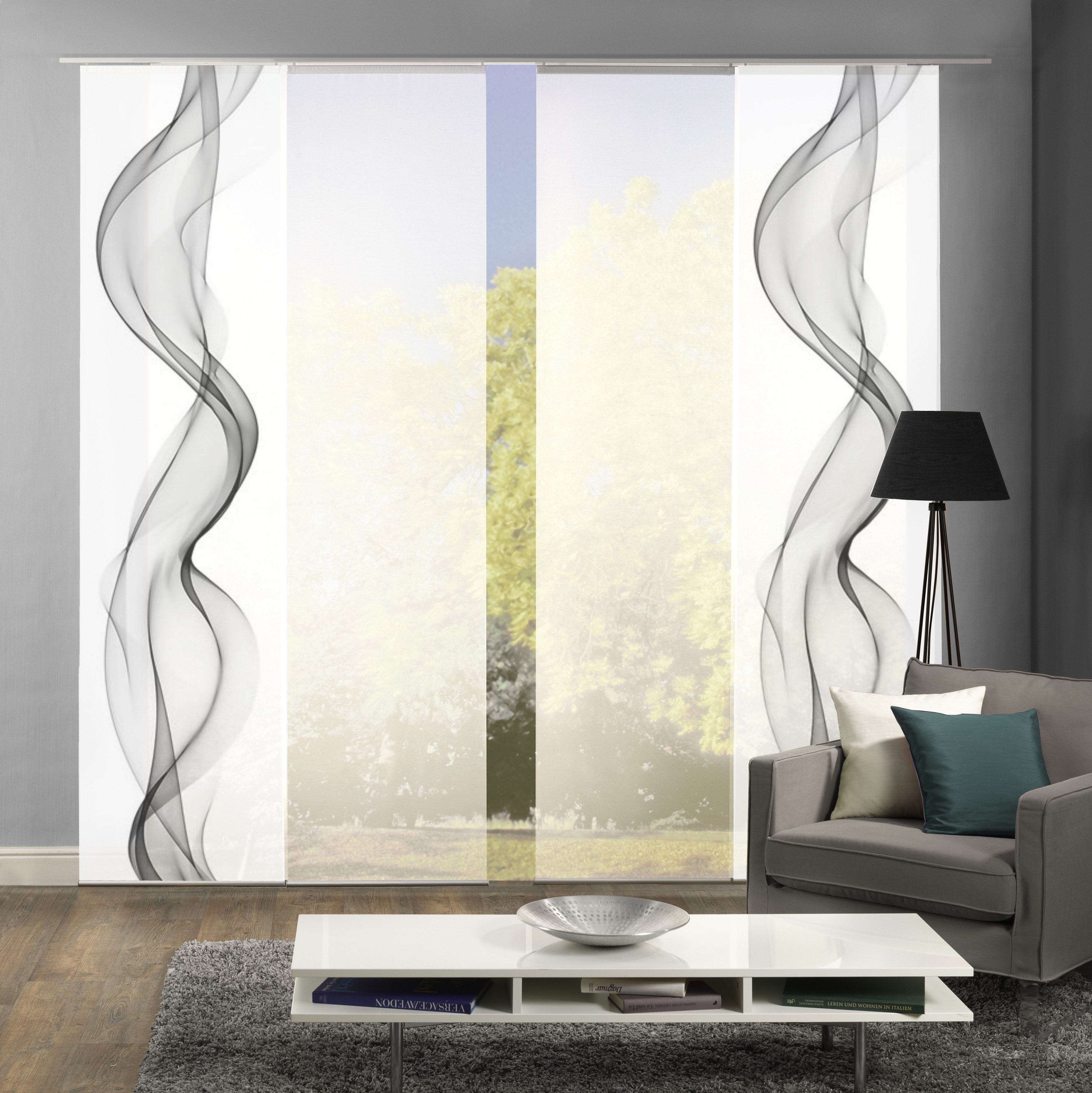 Hinweis Aufhängung | Der Paneelwagen wird mit beiliegenden Röllchen oder mit X-Gleitern an jeder gängigen Gardinenleiste oder -schiene montiert. |