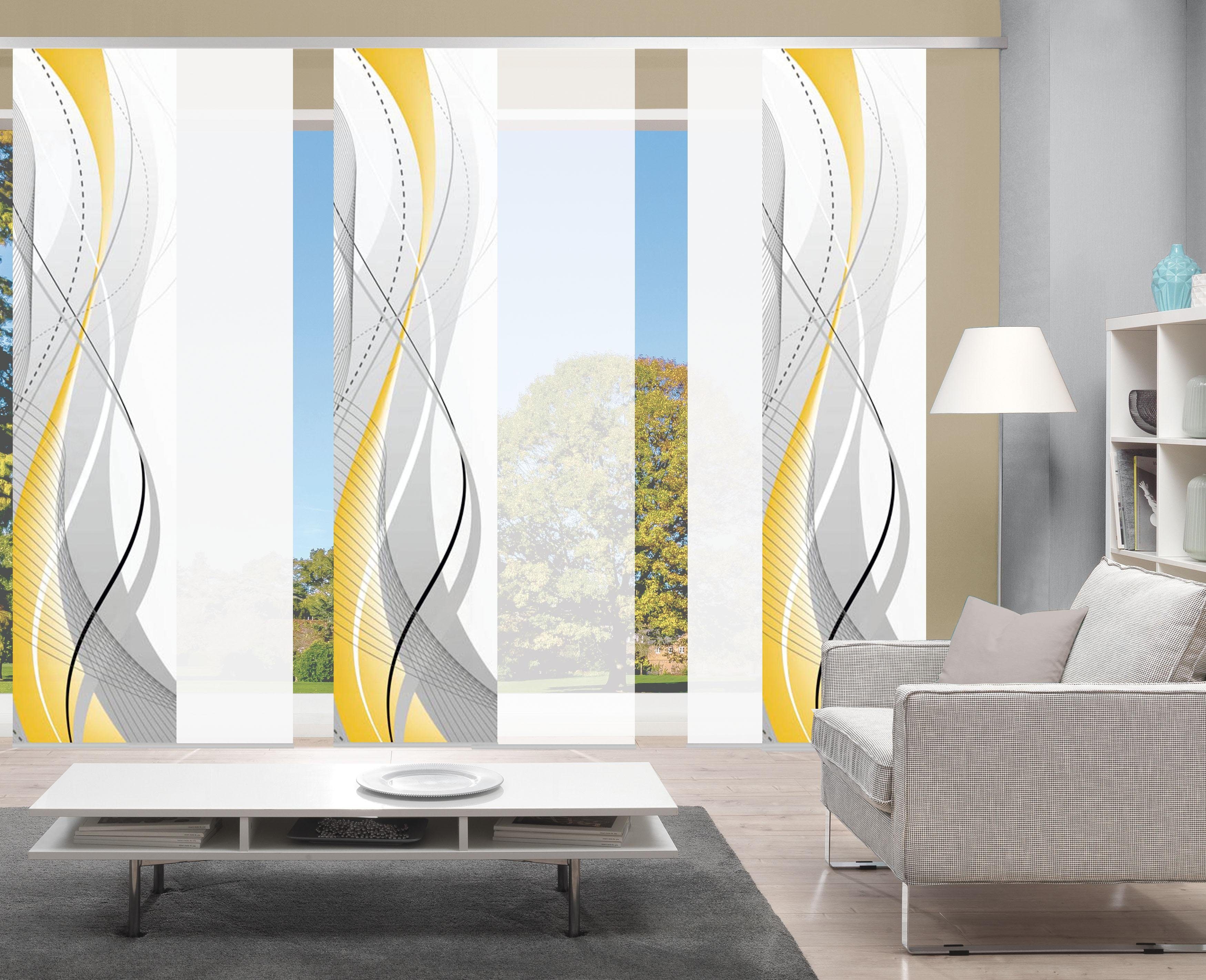 Hinweis Dekoration | Eine Schiebegardine ist eine schmale, glatt hängende Stoffbahn, die sich sowohl als Sichtschutz als auch zur Raumteilung eignet. Durch die Schiebetechnik sind Schiebegardinen sehr flexibel einsetzbar. |