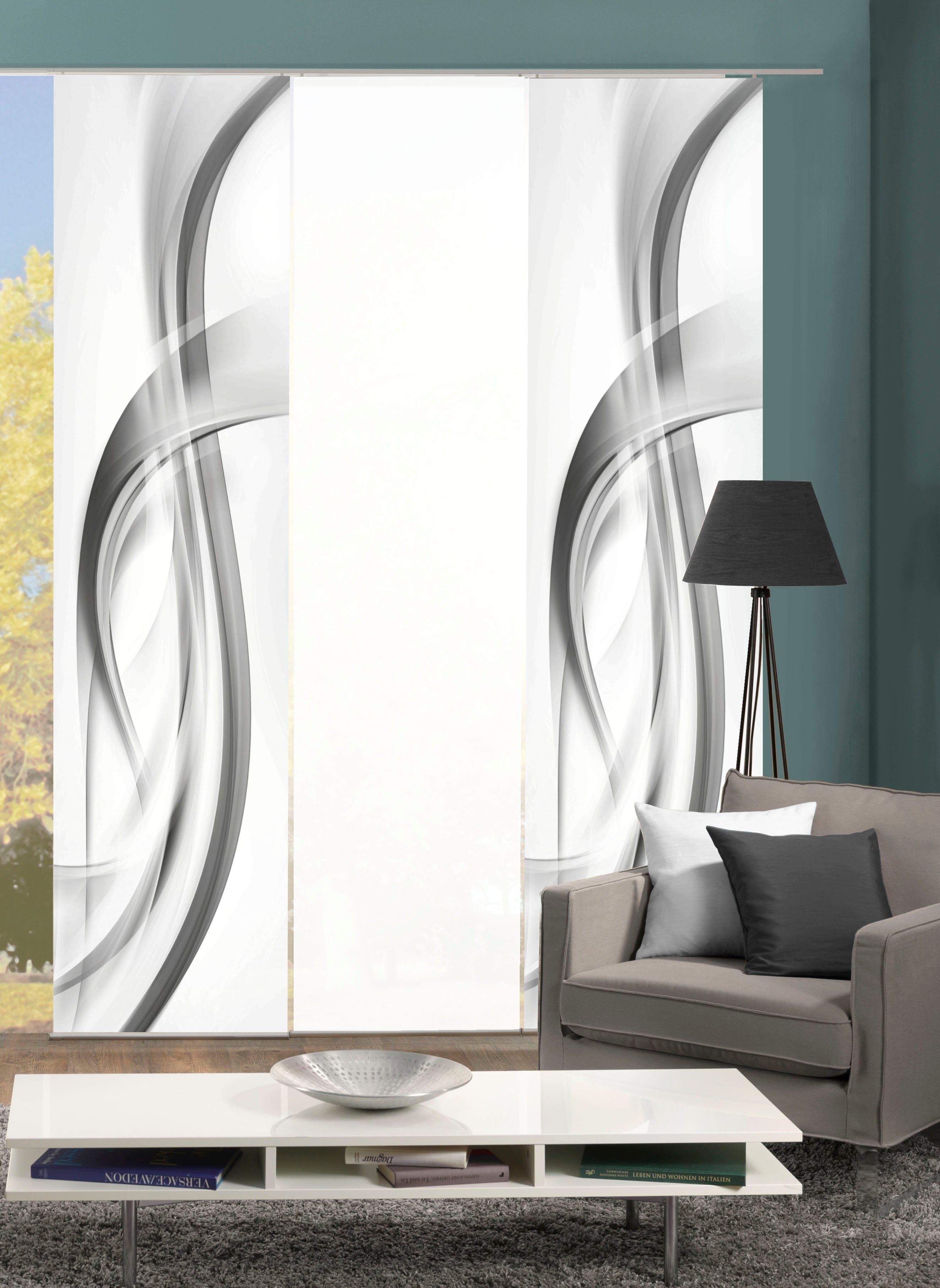Hinweis Dekoration | Die angegebenen Maße sind die fertig dekorierten Maße. Eine Schiebegardine ist eine schmale, glatt hängende Stoffbahn, die sich sowohl als Sichtschutz als auch zur Raumteilung eignet. Durch die Schiebetechnik sind Schiebegardinen sehr flexibel einsetzbar. |