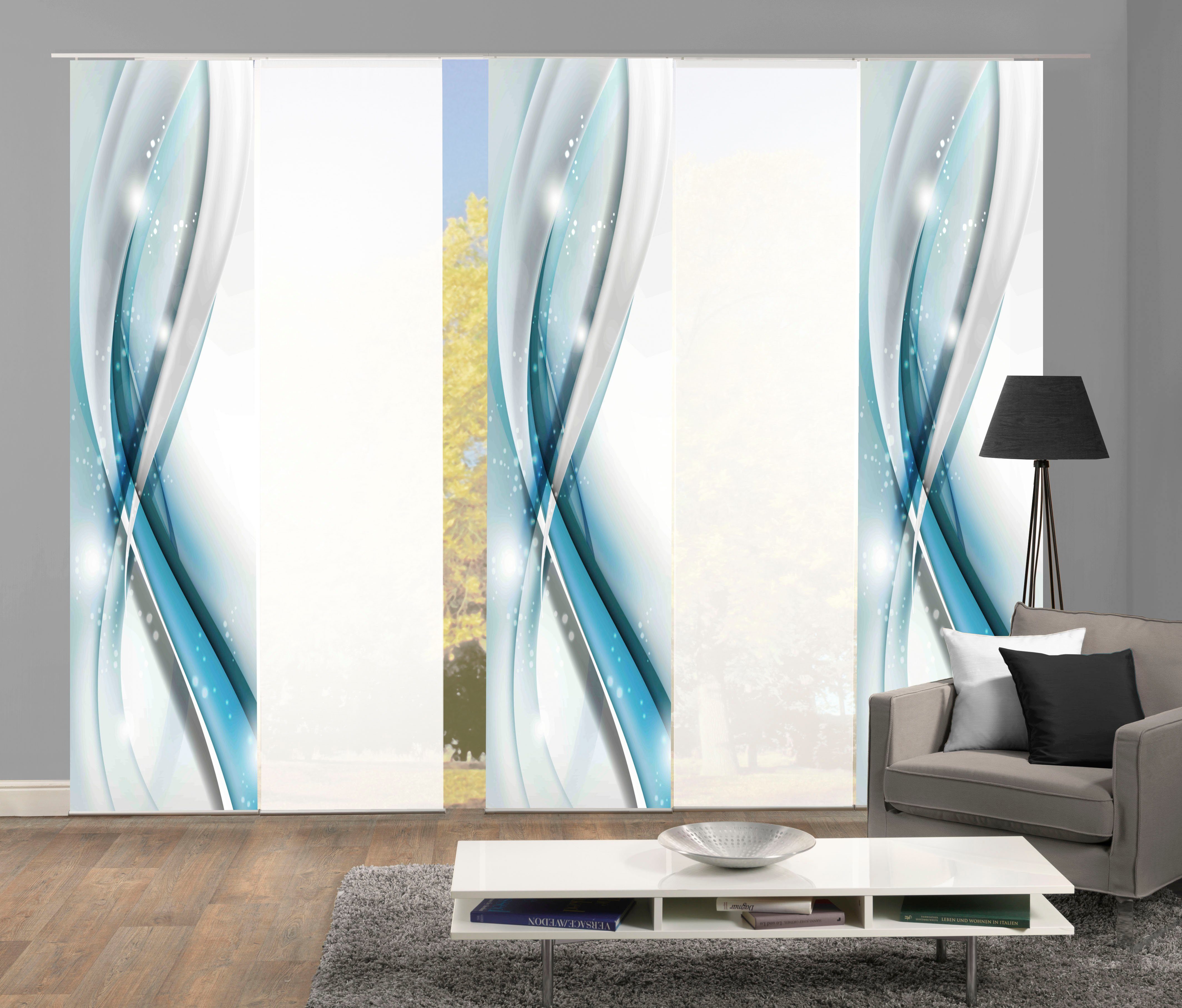 Hinweis Dekoration | Die angegebenen Maße sind die fertig dekorierten Maße. Eine Schiebegardine ist eine schmale, glatt hängende Stoffbahn, die sich sowohl als Sichtschutz als auch zur Raumteilung eignet. Durch die Schiebetechnik sind Schiebegardinen sehr flexibel einsetzbar. |