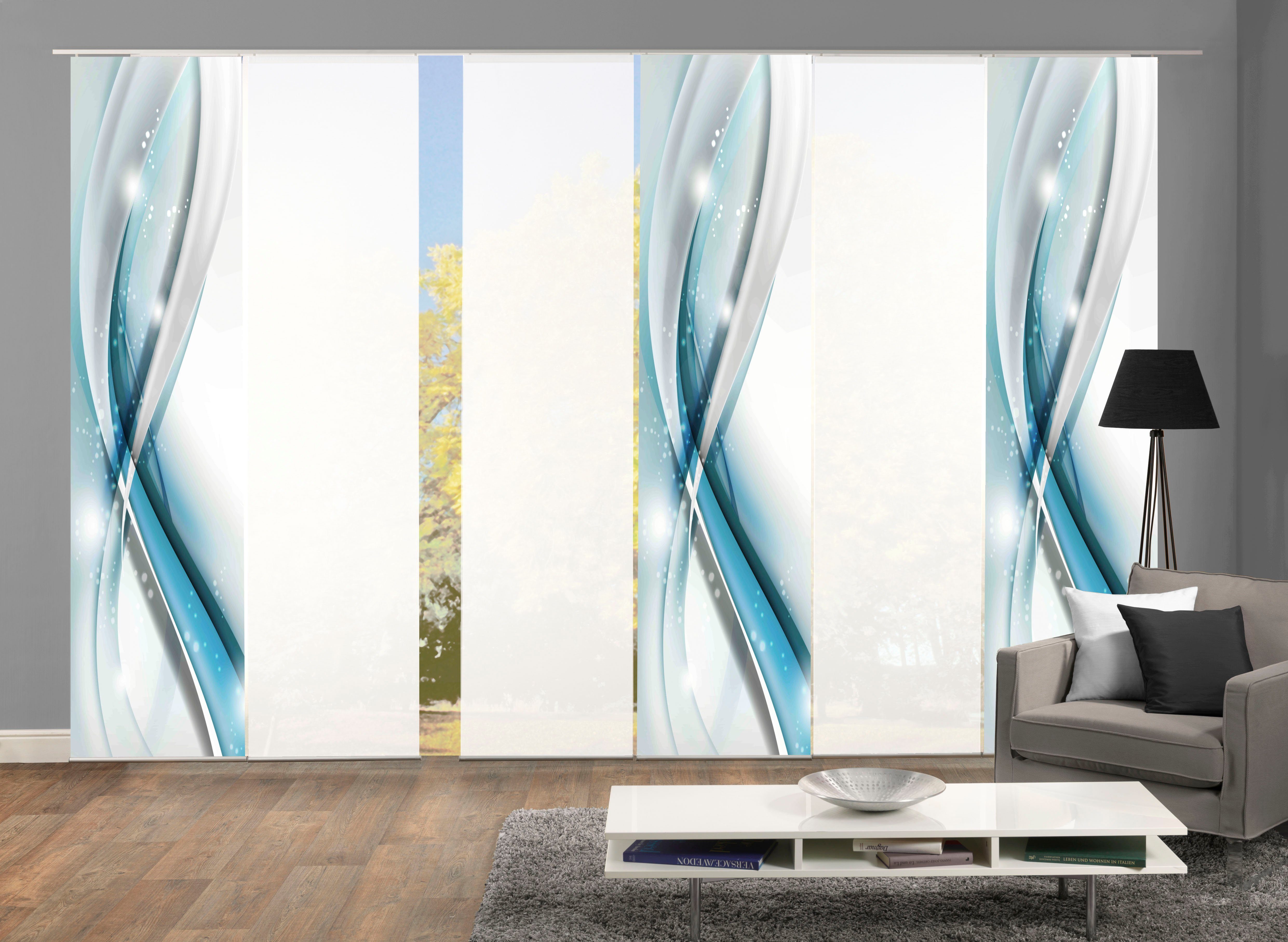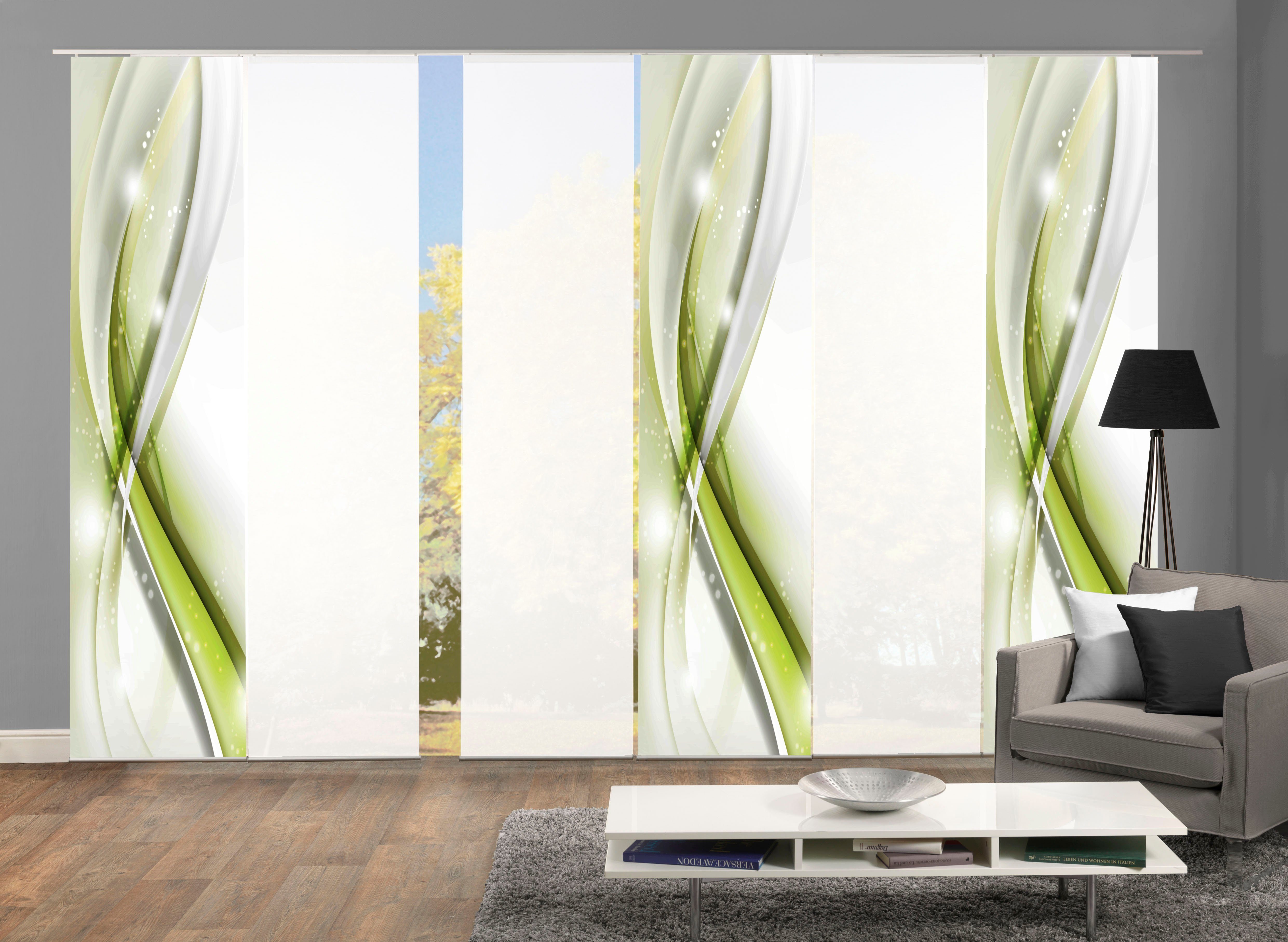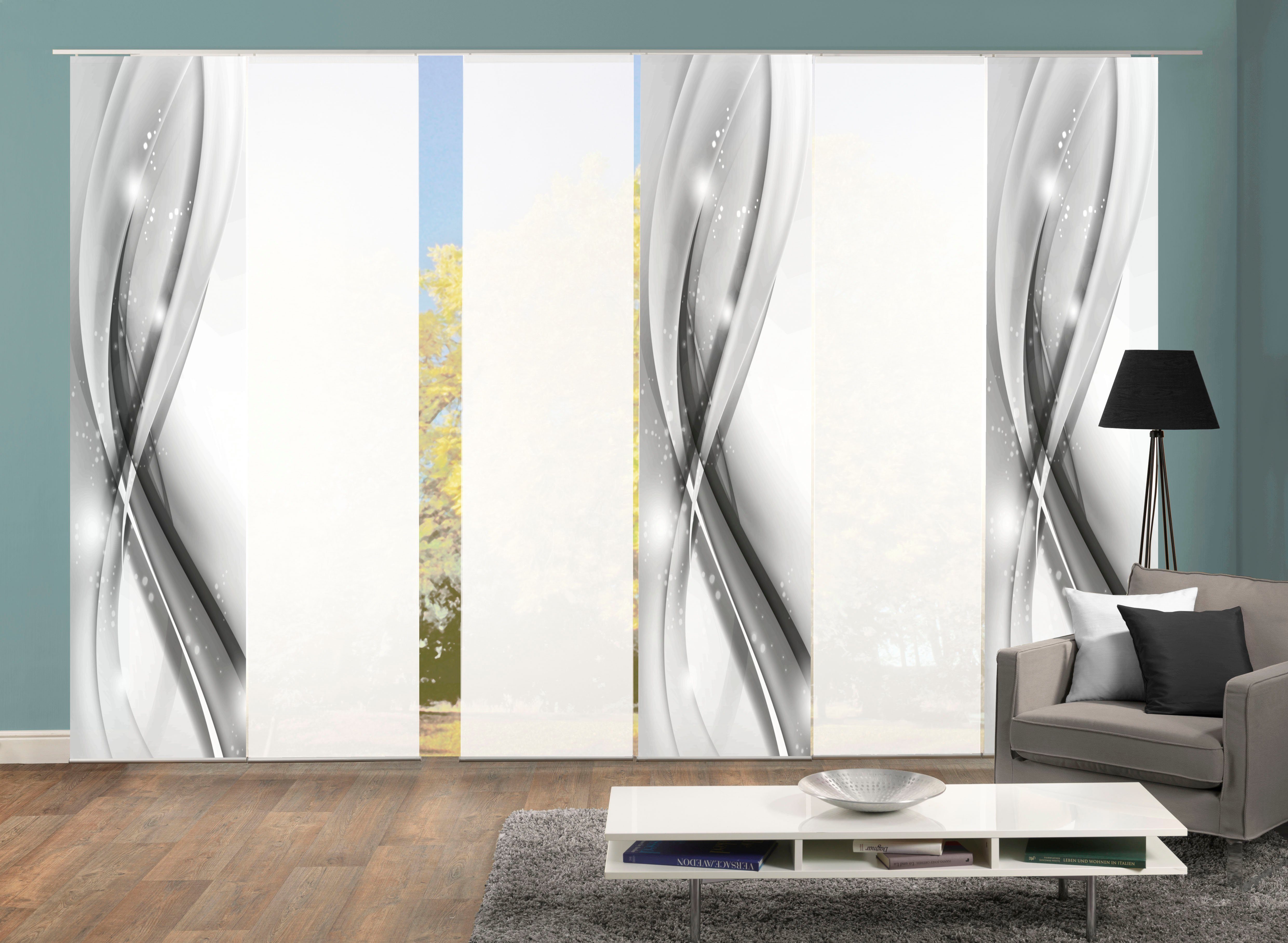 Hinweis Dekoration | Die angegebenen Maße sind die fertig dekorierten Maße. Eine Schiebegardine ist eine schmale, glatt hängende Stoffbahn, die sich sowohl als Sichtschutz als auch zur Raumteilung eignet. Durch die Schiebetechnik sind Schiebegardinen sehr flexibel einsetzbar. |