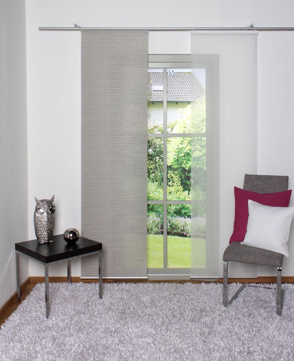 Mit der Schiebegardine von Home Wohnideen setzen Sie auf einen echten Allrounder. Eine tolle Fensterdekoration, die auch als Licht- und Sichtschutz dient. Wunderschöner, moderner Schiebevorhang aus halbtransparentem Stoff mit Querstreifen. Der Schiebevorhang wird in ein Schiebesystem befestigt und kann überlappend mit anderen Schiebevorhängen unabhängig voneinander hin- und hergeschoben werden. Gestalten Sie nach Ihren Wünschen und Bedürfnissen. Der Vorhang besteht aus Polyester und kann bei 30 Grad im Schonwaschgang gereinigt werden. Der Vorhang darf nicht im Trockner getrocknet werden. Genießen Sie elegantes, dekoratives Ambiente zum Wohlfühlen. Verschönern Sie Ihr Zuhause mit einem Produkt der Marke Home Wohnideen.