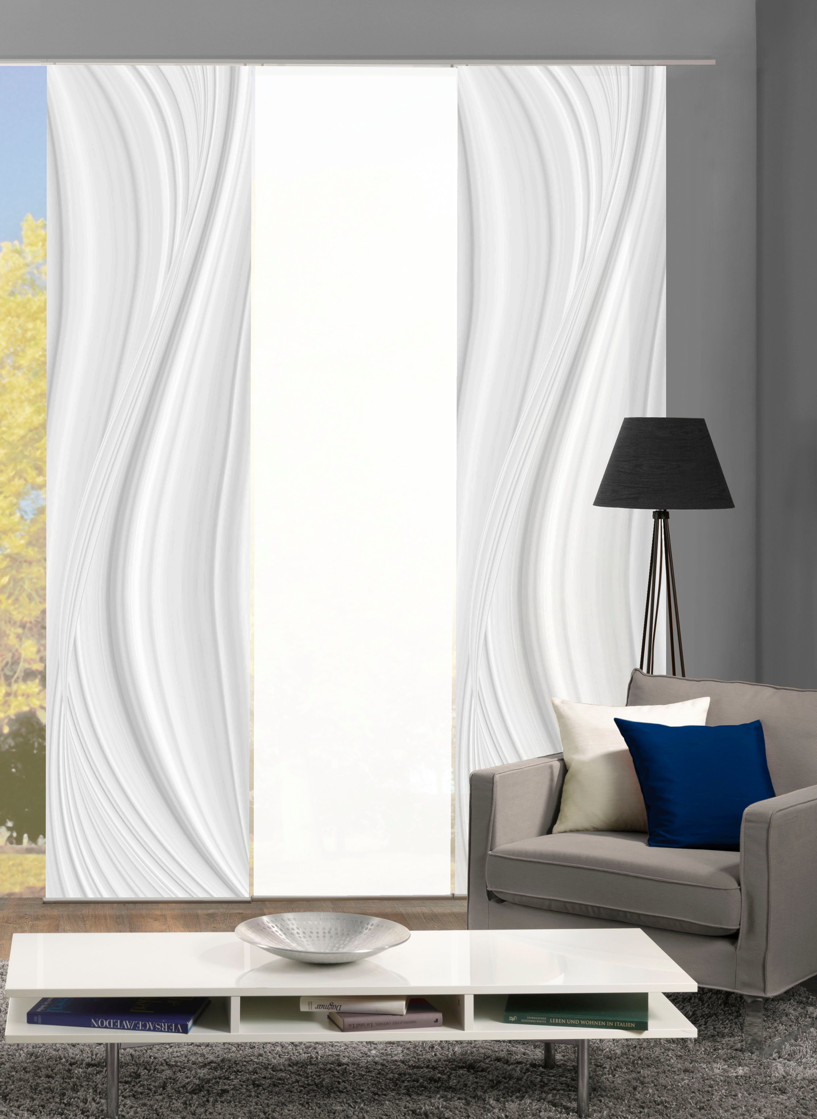Hinweis Dekoration | Die angegebenen Maße sind die fertig dekorierten Maße. Eine Schiebegardine ist eine schmale, glatt hängende Stoffbahn, die sich sowohl als Sichtschutz als auch zur Raumteilung eignet. Durch die Schiebetechnik sind Schiebegardinen sehr flexibel einsetzbar. |