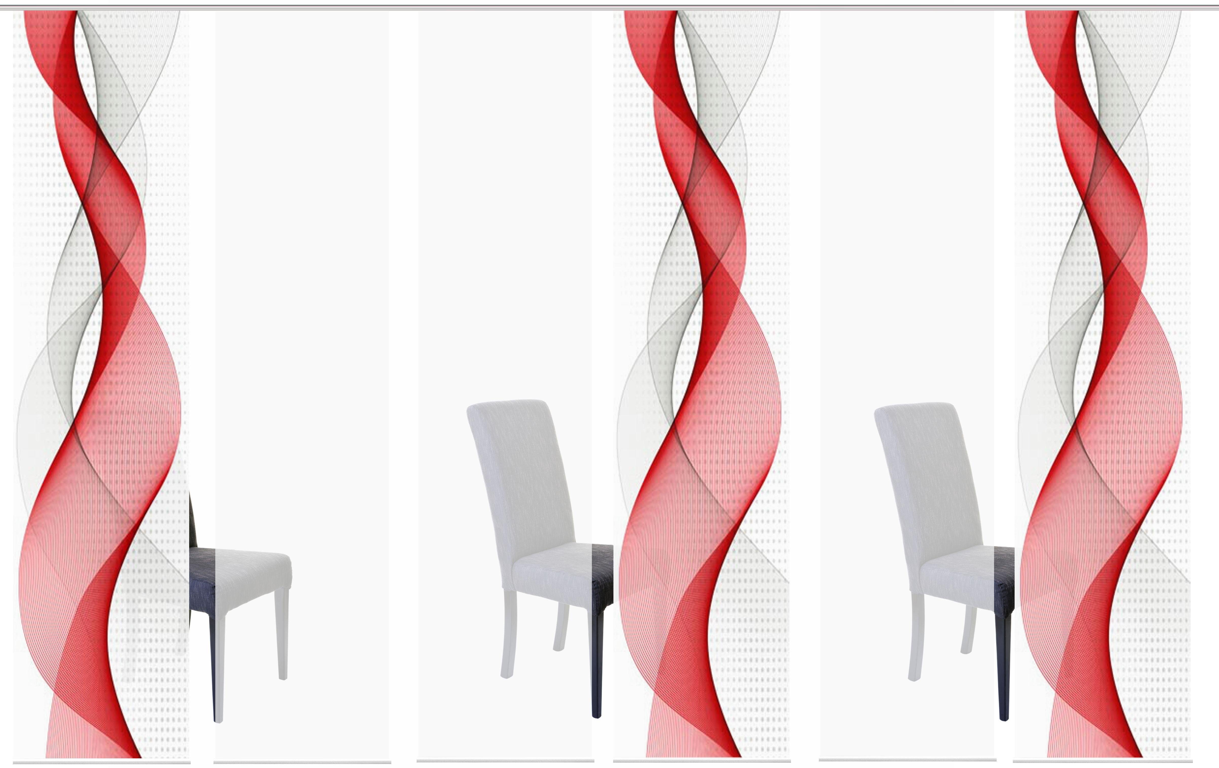 Hinweis Dekoration | Eine Schiebegardine ist eine schmale, glatt hängende Stoffbahn, die sich sowohl als Sichtschutz als auch zur Raumteilung eignet. Durch die Schiebetechnik sind Schiebegardinen sehr flexibel einsetzbar. |
