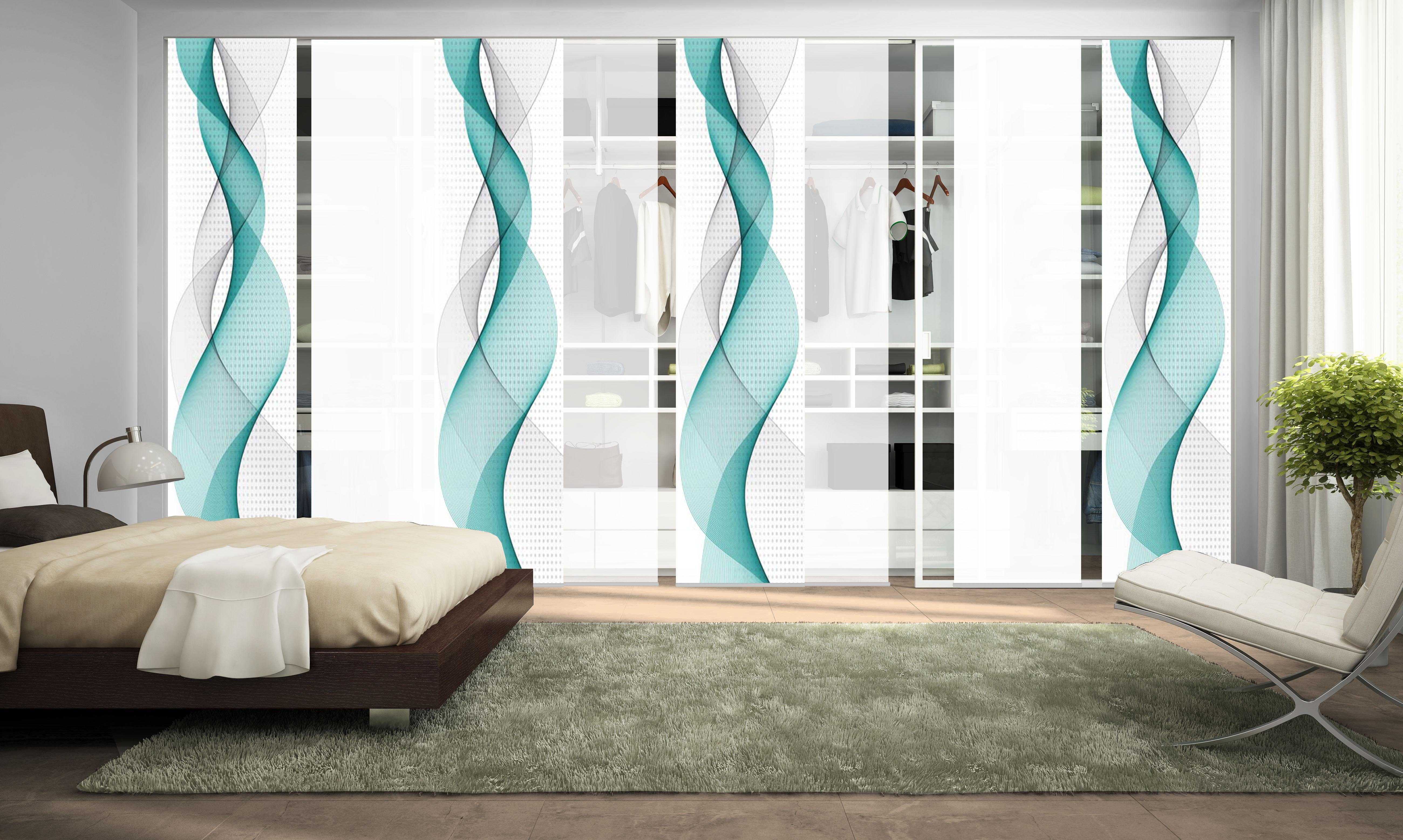 Hinweis Dekoration | Eine Schiebegardine ist eine schmale, glatt hängende Stoffbahn, die sich sowohl als Sichtschutz als auch zur Raumteilung eignet. Durch die Schiebetechnik sind Schiebegardinen sehr flexibel einsetzbar. |
