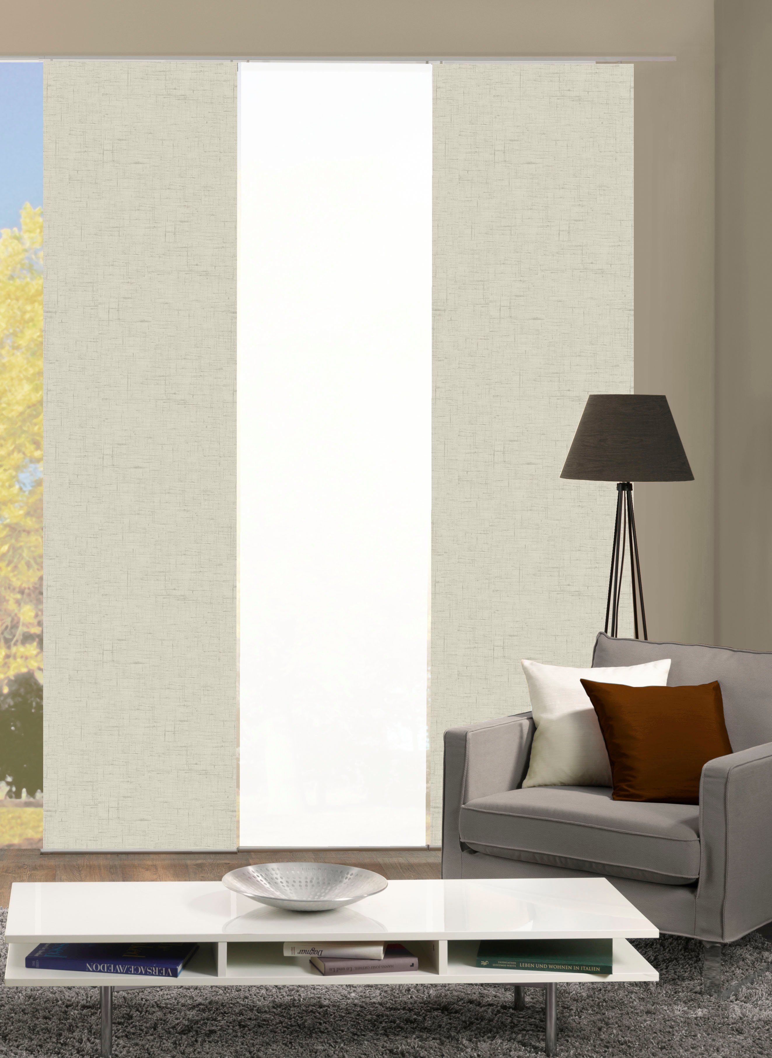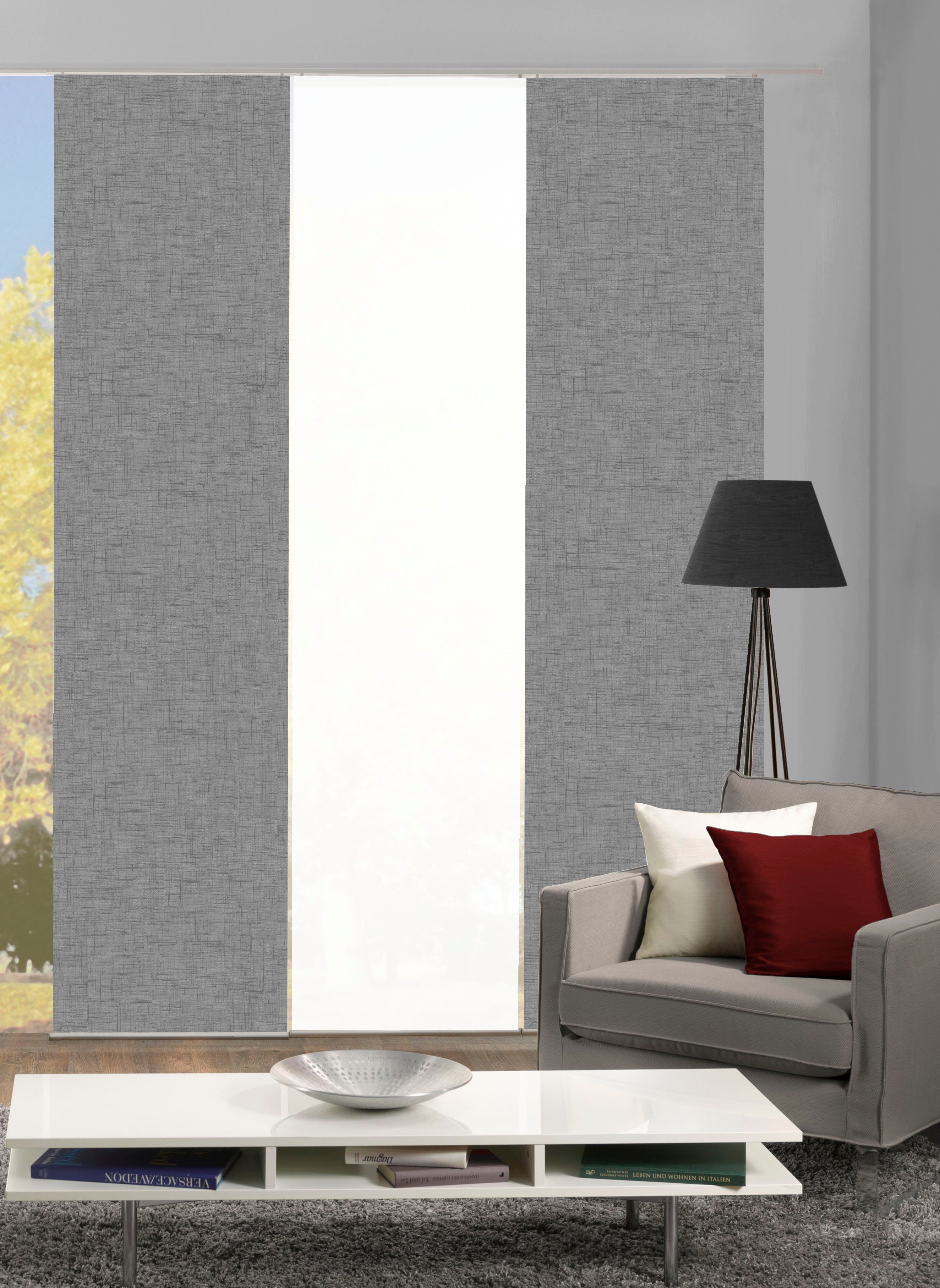 Hinweis Dekoration | Die angegebenen Maße sind die fertig dekorierten Maße. Eine Schiebegardine ist eine schmale, glatt hängende Stoffbahn, die sich sowohl als Sichtschutz als auch zur Raumteilung eignet. Durch die Schiebetechnik sind Schiebegardinen sehr flexibel einsetzbar. |