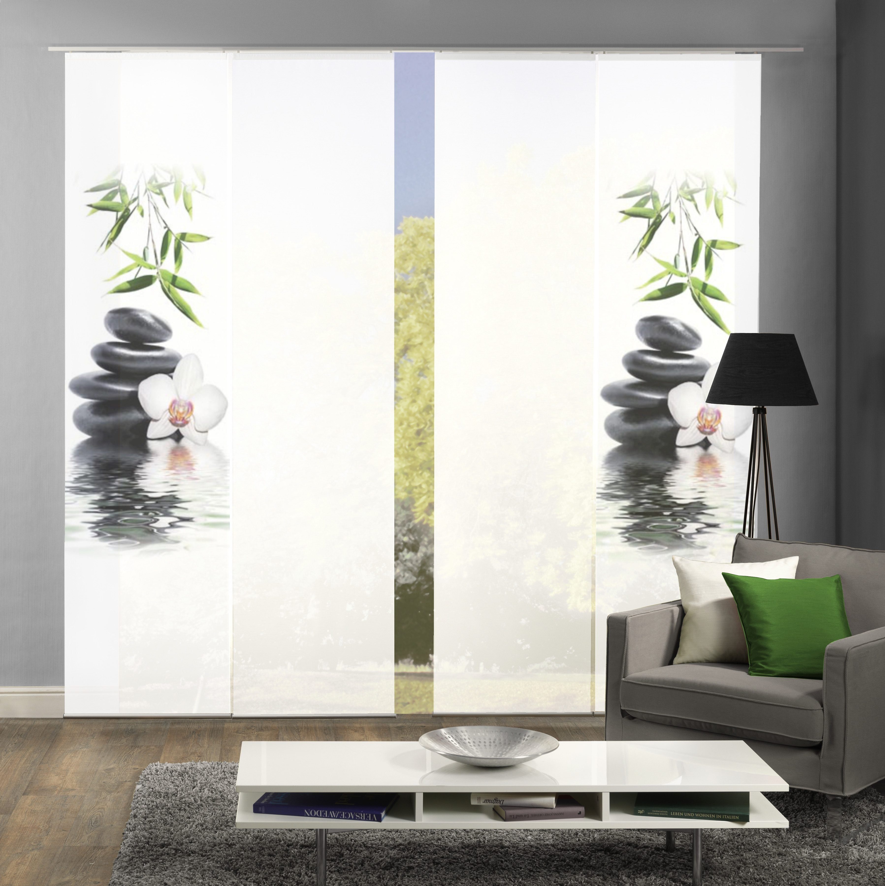 Hinweis Aufhängung | Der Paneelwagen wird mit beiliegenden Röllchen oder mit X-Gleitern an jeder gängigen Gardinenleiste oder -schiene montiert. |