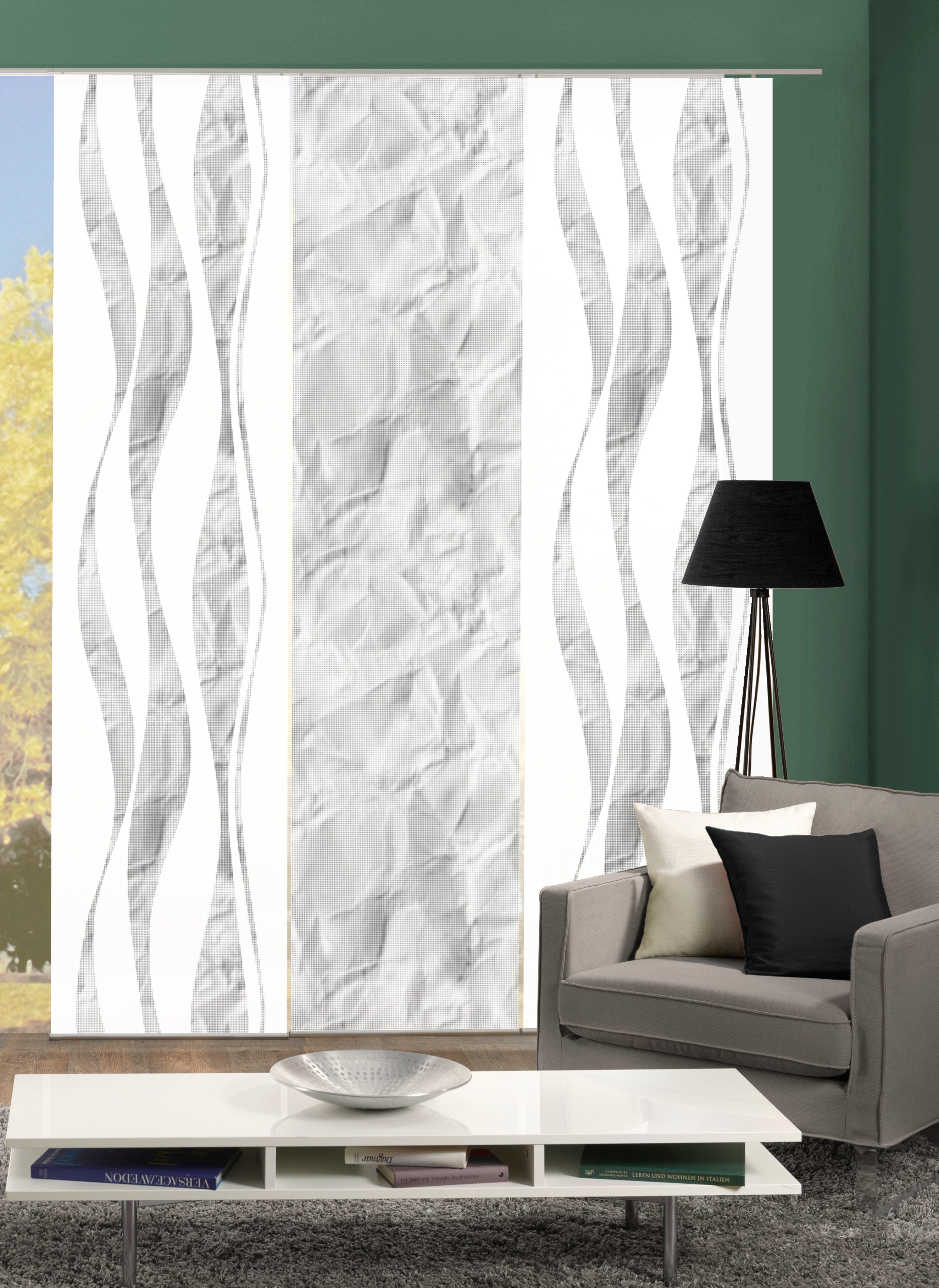 Hinweis Dekoration | Die angegebenen Maße sind die fertig dekorierten Maße. Eine Schiebegardine ist eine schmale, glatt hängende Stoffbahn, die sich sowohl als Sichtschutz als auch zur Raumteilung eignet. Durch die Schiebetechnik sind Schiebegardinen sehr flexibel einsetzbar. |