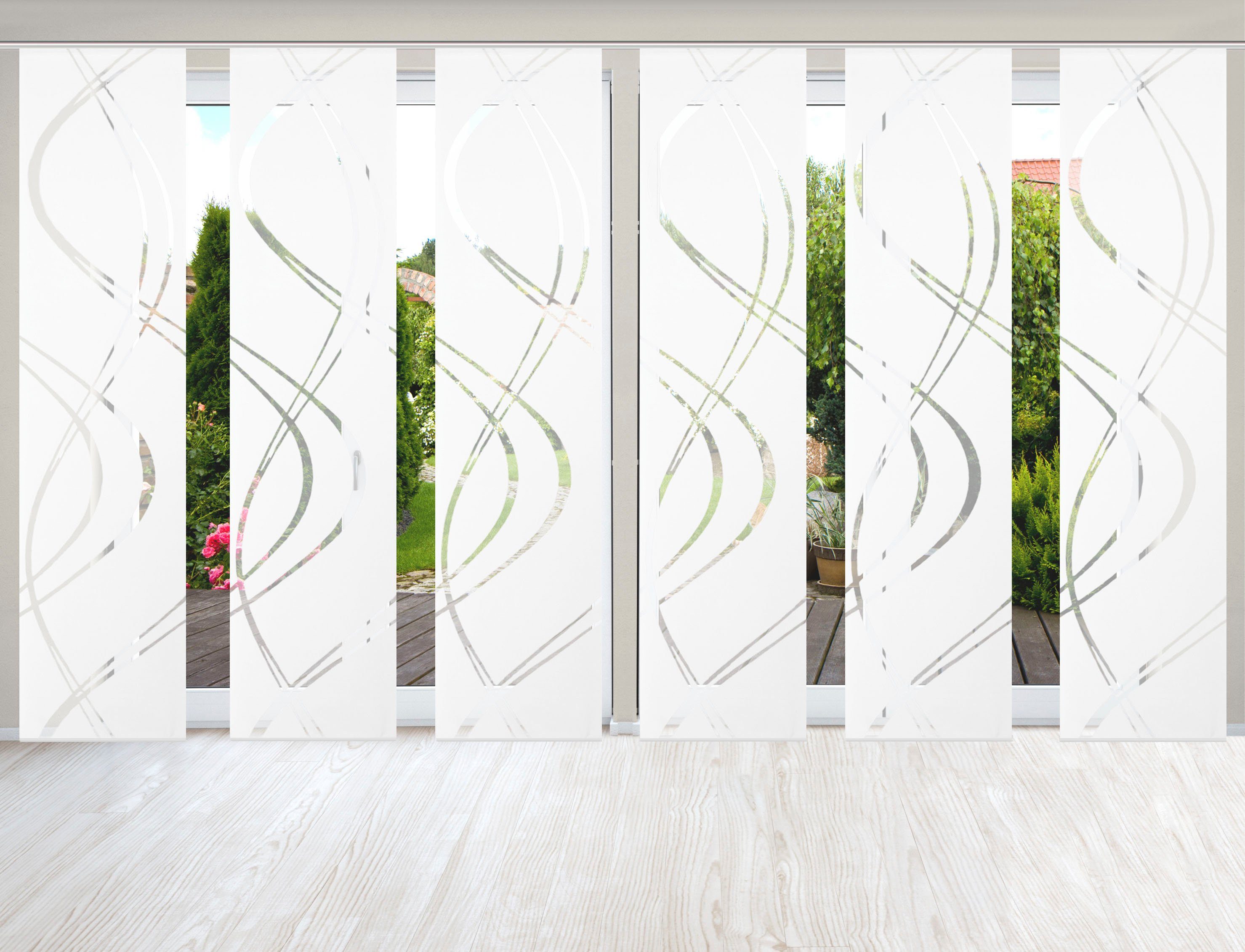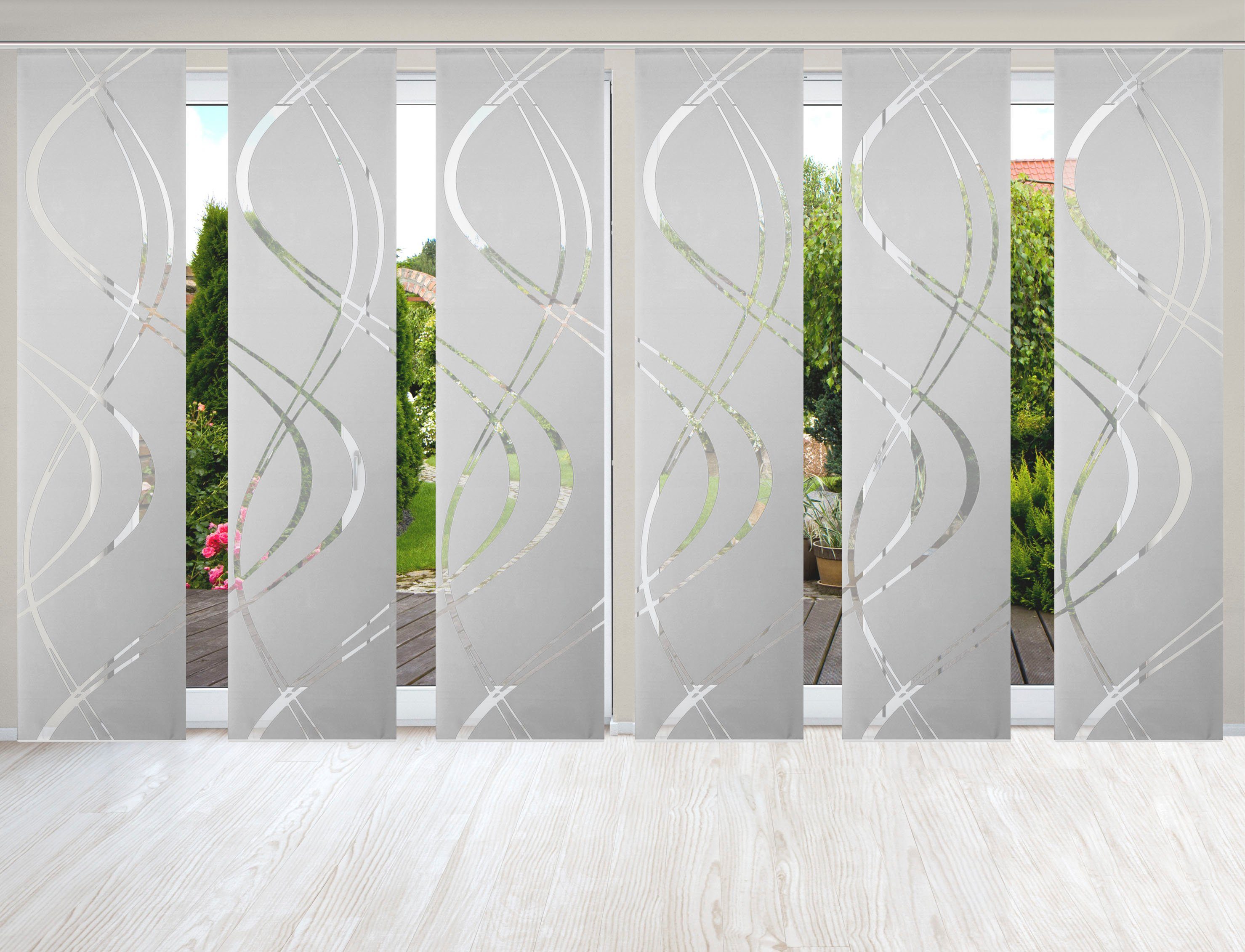 Hinweis Dekoration | Die angegebenen Maße sind die fertig dekorierten Maße. Eine Schiebegardine ist eine schmale, glatt hängende Stoffbahn, die sich sowohl als Sichtschutz als auch zur Raumteilung eignet. Durch die Schiebetechnik sind Schiebegardinen sehr flexibel einsetzbar. |