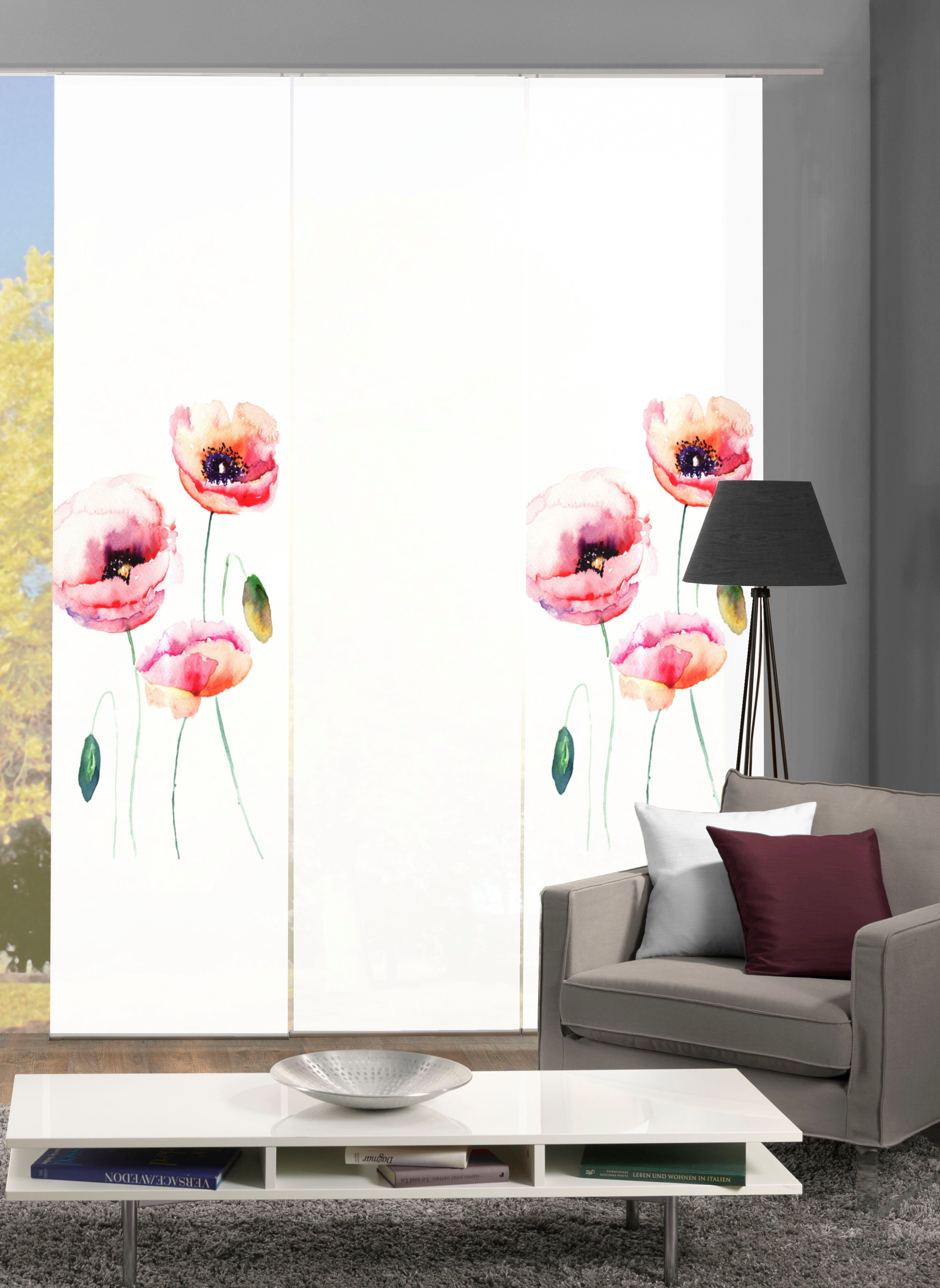 Hinweis Dekoration | Die angegebenen Maße sind die fertig dekorierten Maße. Eine Schiebegardine ist eine schmale, glatt hängende Stoffbahn, die sich sowohl als Sichtschutz als auch zur Raumteilung eignet. Durch die Schiebetechnik sind Schiebegardinen sehr flexibel einsetzbar. |
