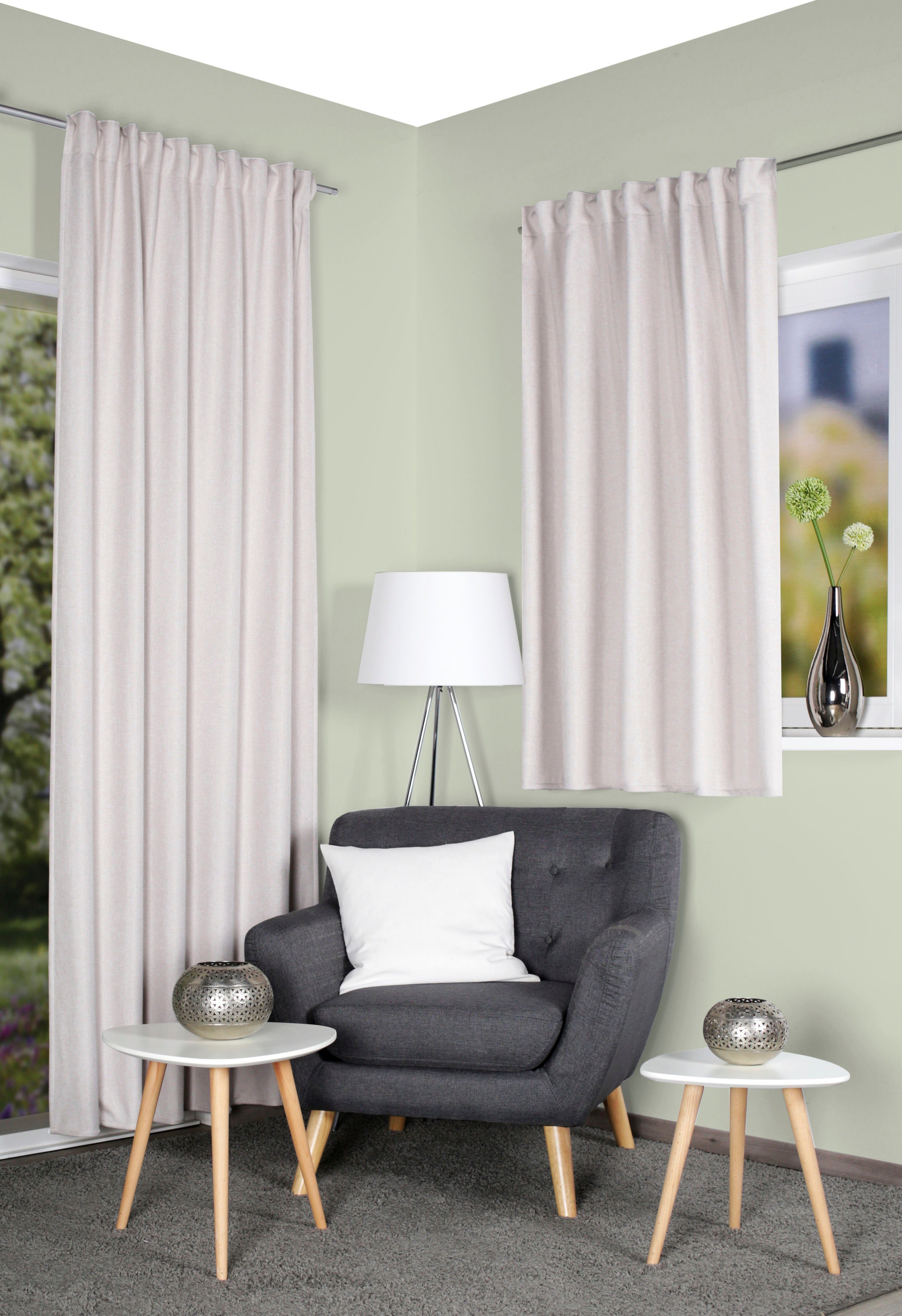 Hinweis Dekoration | Am Fenster fertig dekoriert, reduziert sich die Breite um ca. die Hälfte. Die angegebenen Maße sind Stoffmaße. |