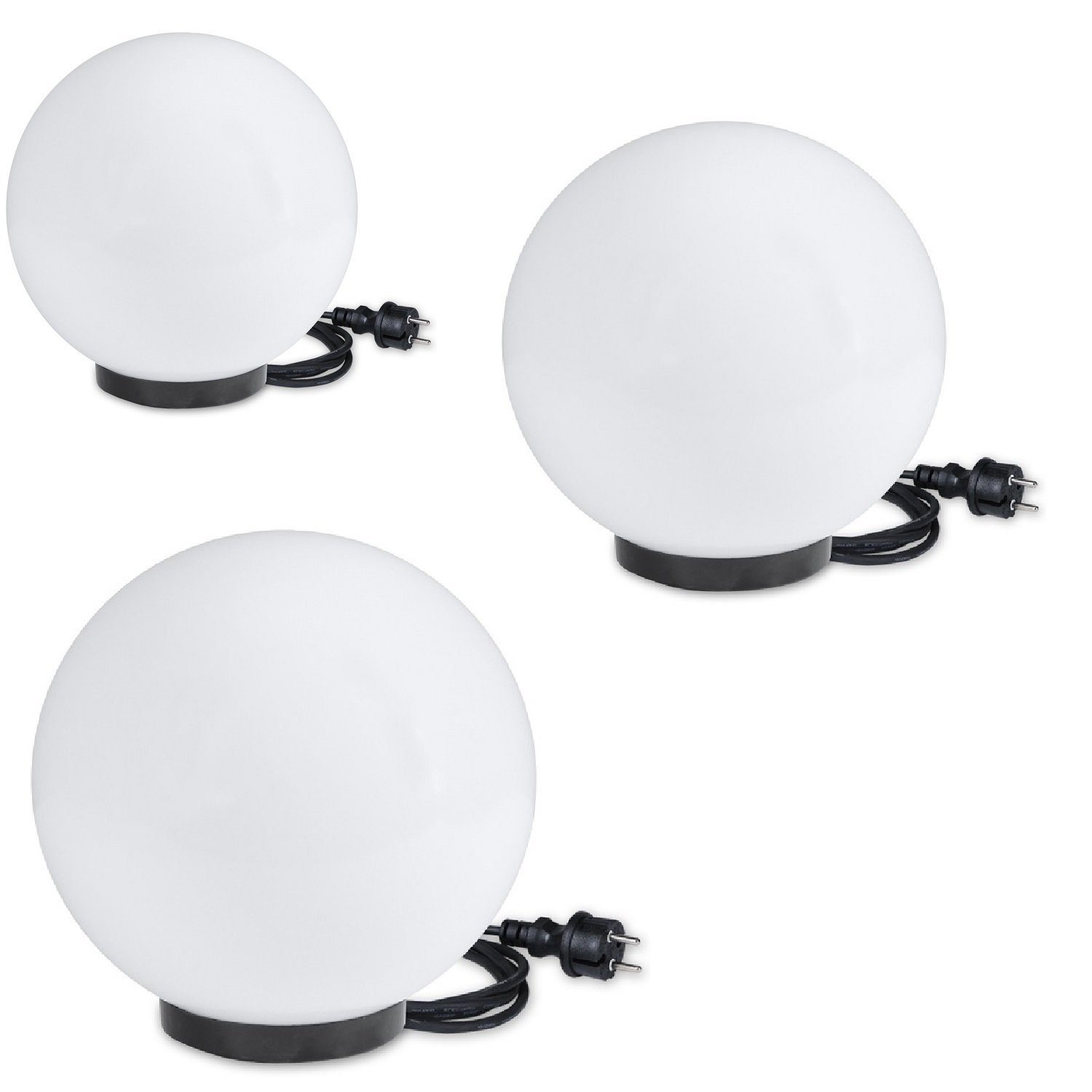 1x25cm/1x30cm/1x40cm Ø Kugelleuchten als 3er Set inkl. 3m Anschlußkabel
