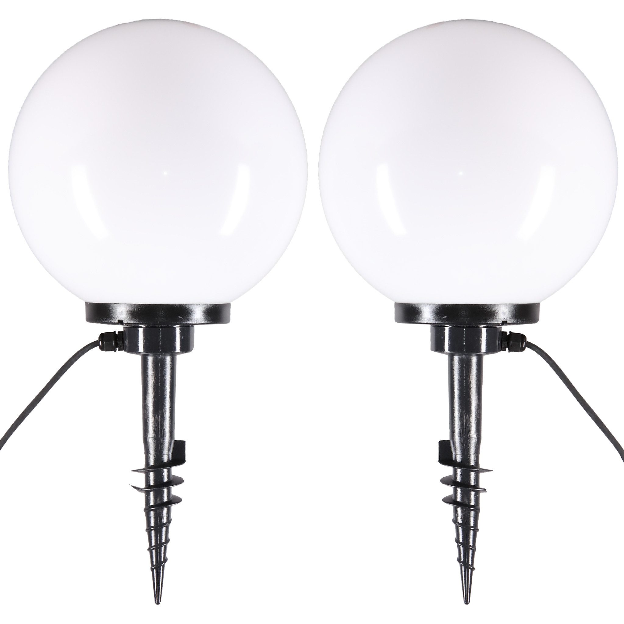 2x 30cm Ø Kugelleuchte, 2x Erdspieß mit Anschlusskabel und Stecker