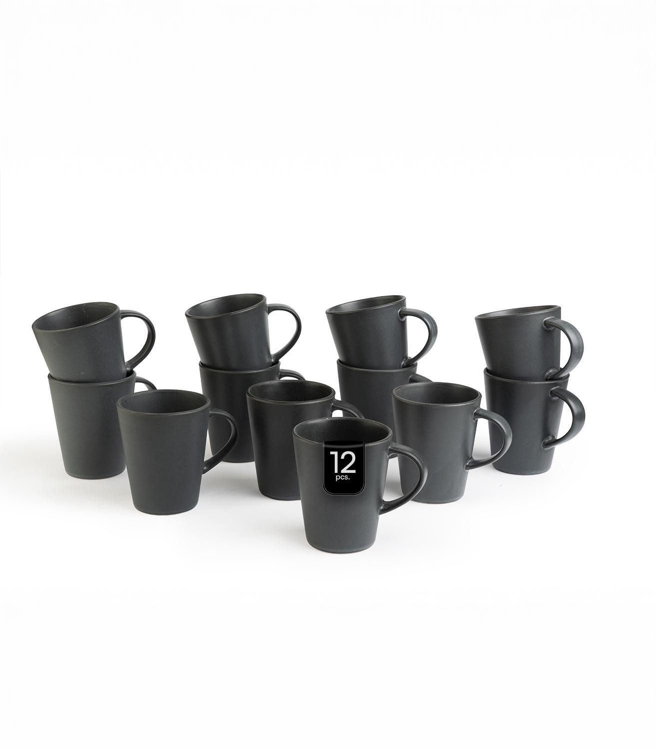 Die Kaffeetassen im 12er Set der Marke Home4You sind in einem attraktiven matten Schwarz gehalten, was ihnen ein modernes und ansprechendes Aussehen verleihen.