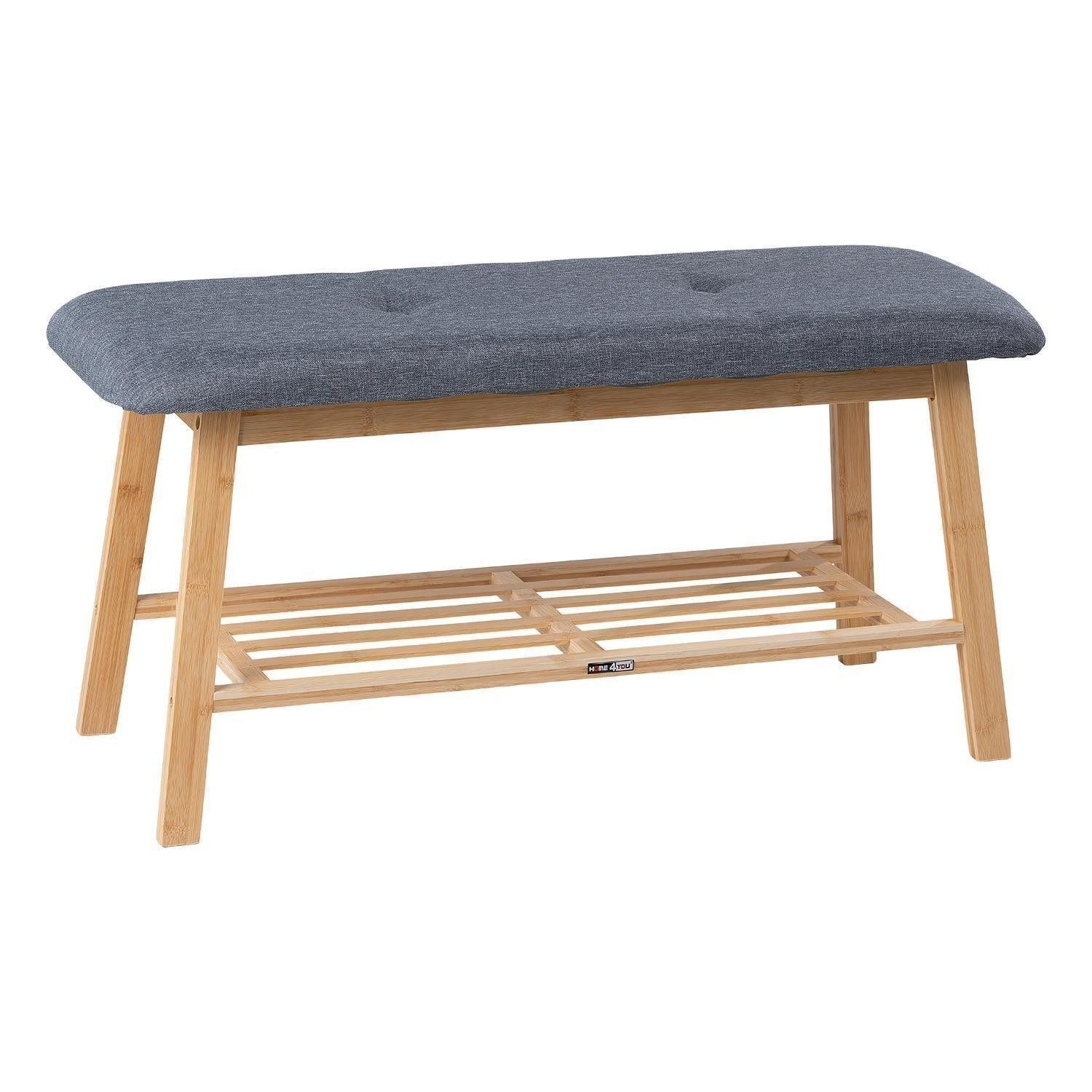 Die Schuhbank der Marke Home4You ist mit einem Stoffbezug in Grau ausgestattet. Gestell und Ablagefläche bestehen aus Bambusholz. Die Ablagefläche bietet Platz für bis zu 3 Paar Schuhe. Die maximale Belastbarkeit beträgt 170 kg. Die Maße der Schuhbank liegen bei 89 cm Breite, 45 cm Höhe und 35 cm Tiefe.