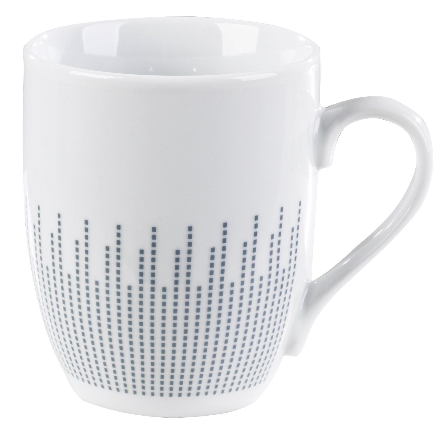 Hergestellt aus hochwertigem Porzellan bietet diese Tasse eine Füllmenge von etwa 290 ml, was sie ideal für Ihren Lieblingskaffee oder andere Heißgetränke macht. Die ungewöhnliche Farbkombination und das grafische Muster machen sie zu einem Blickfang auf Ihrem Esstisch oder im Büro.