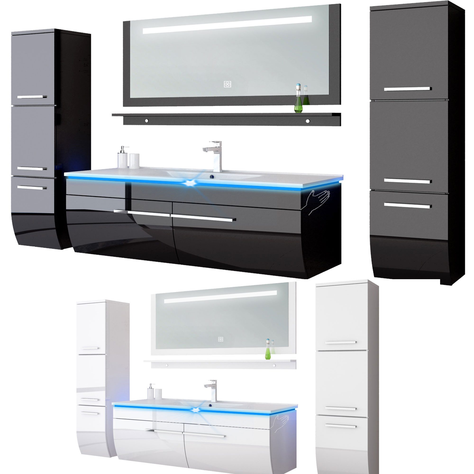 Badmöbelset Bis 6 Teilig Hochglanz Lackiert Fronten und Seiten Weiß oder Schwarz.
