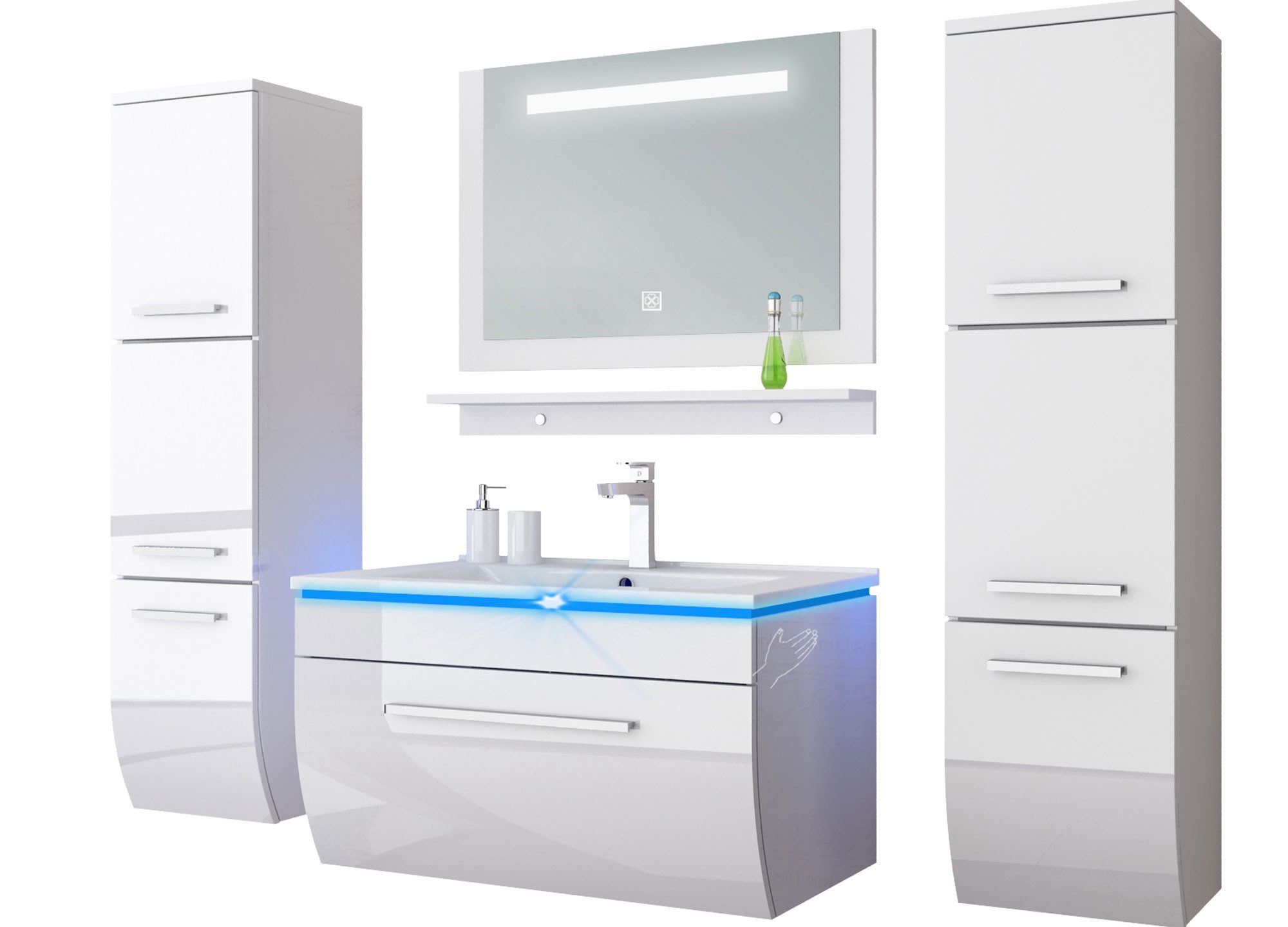 Badmöbelset 6 Teilig Hochglanz Lackiert Fronten und Seiten Weiß.