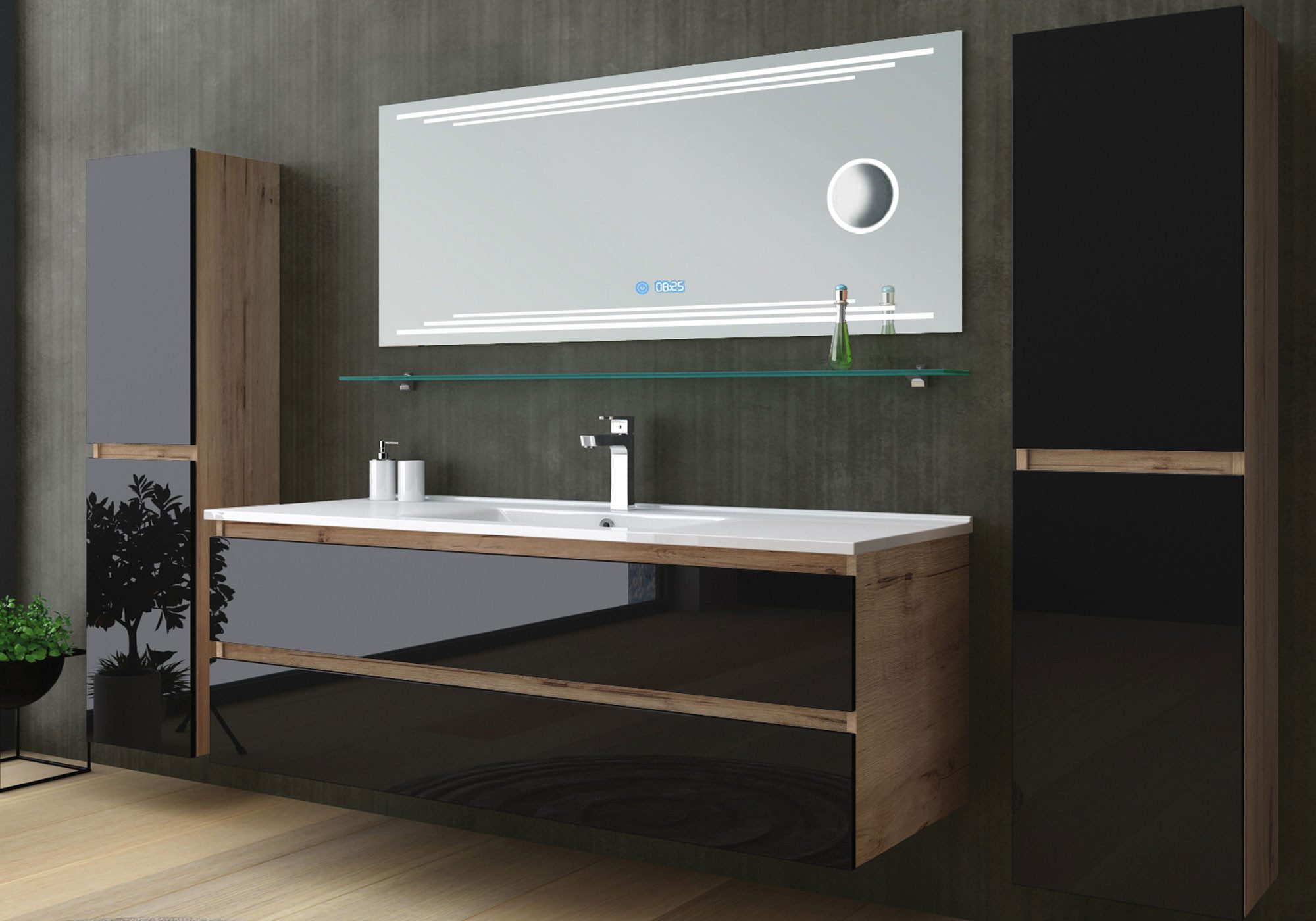 ***** Badmöbel Se 60-90-120 cm Kaiser Schwarz/ Eiche Komplett Bis 6 Teilig mit LED Kosmetik spielen *****