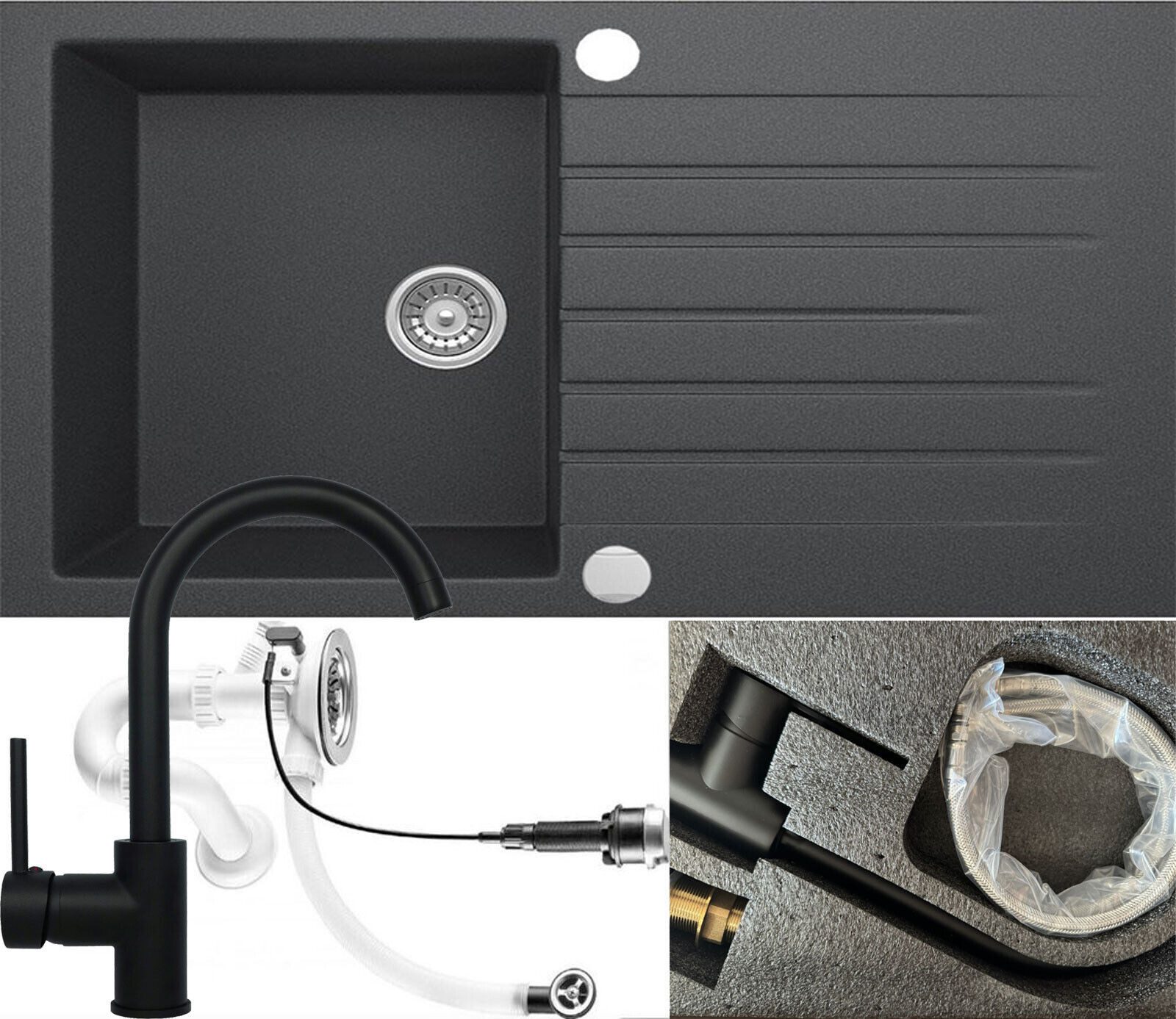 *Granit Küchenspüle Vorgebohrt für Armatur Reversibel – Links oder Rechts montierbar,inklusive Zubehör Ablaufgarnitur und armatur, Mit Armatur.Die erstklassige Verarbeitung durch die Herstellung in der EU und das hochwertige Material. das moderne Spülbecken der Marke Homeline zu einem Highlight.