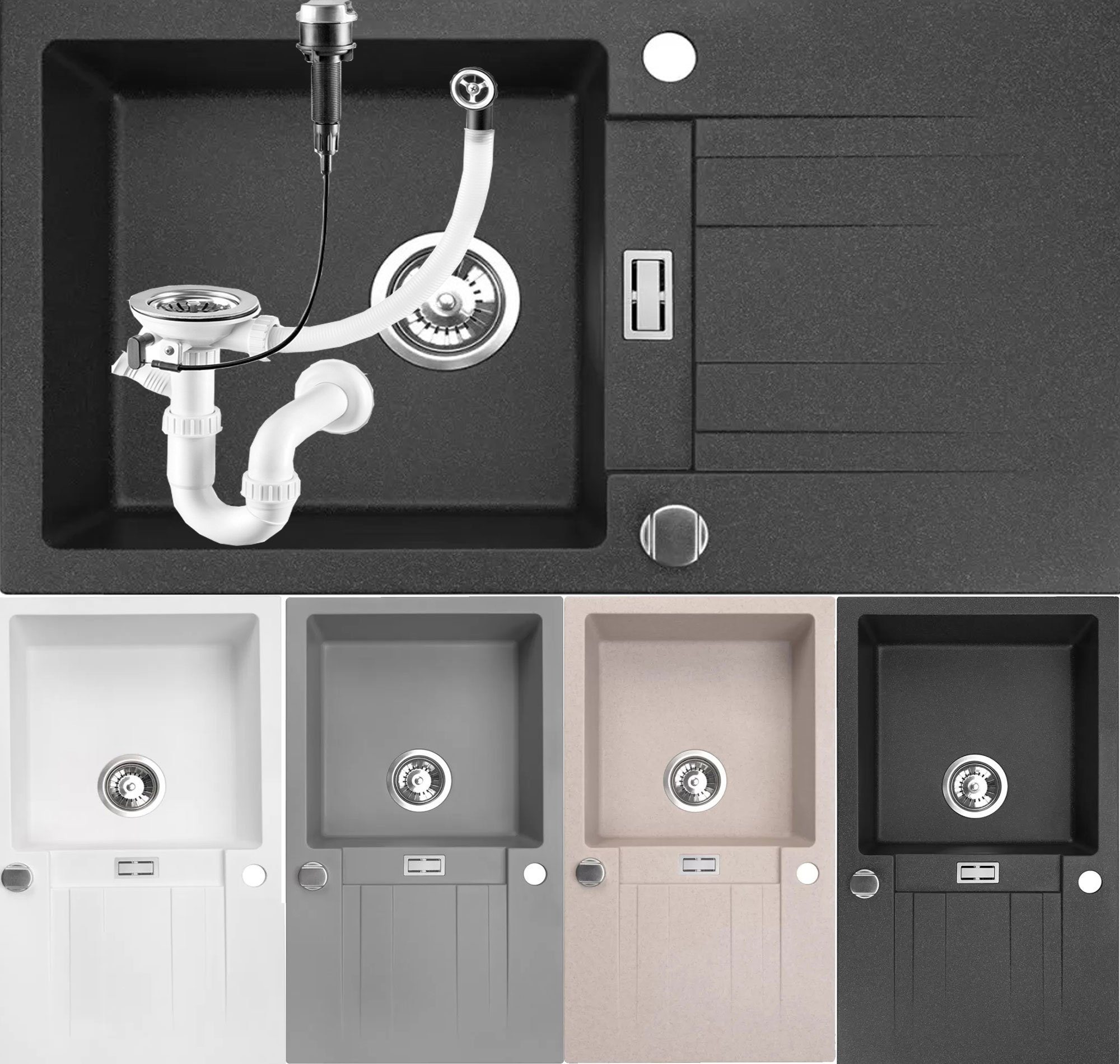 Marken produkt *Granit Küchenspüle London in Schwarz,Grau, Weiss,Beige vorgebohrt für Armatur Reversibel – Links oder Rechts montierbar,inklusive Zubehör Ablaufgarnitur, Ohne Armatur.Die erstklassige Verarbeitung durch die Herstellung in der EU und das hochwertige Material. das moderne Spülbecken der Marke Homeline zu einem Highlight.
