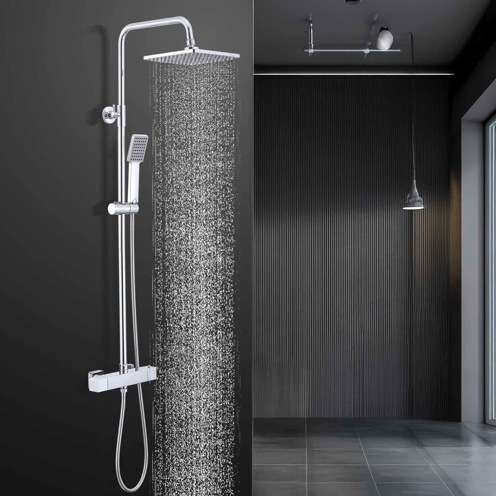 Das Hauptmaterial des duschsystem mit thermostat ist hochwertiges Zinklegierung mit Keramik Ventilkern, das Verunreinigungen aus dem Wasser herausfiltert.