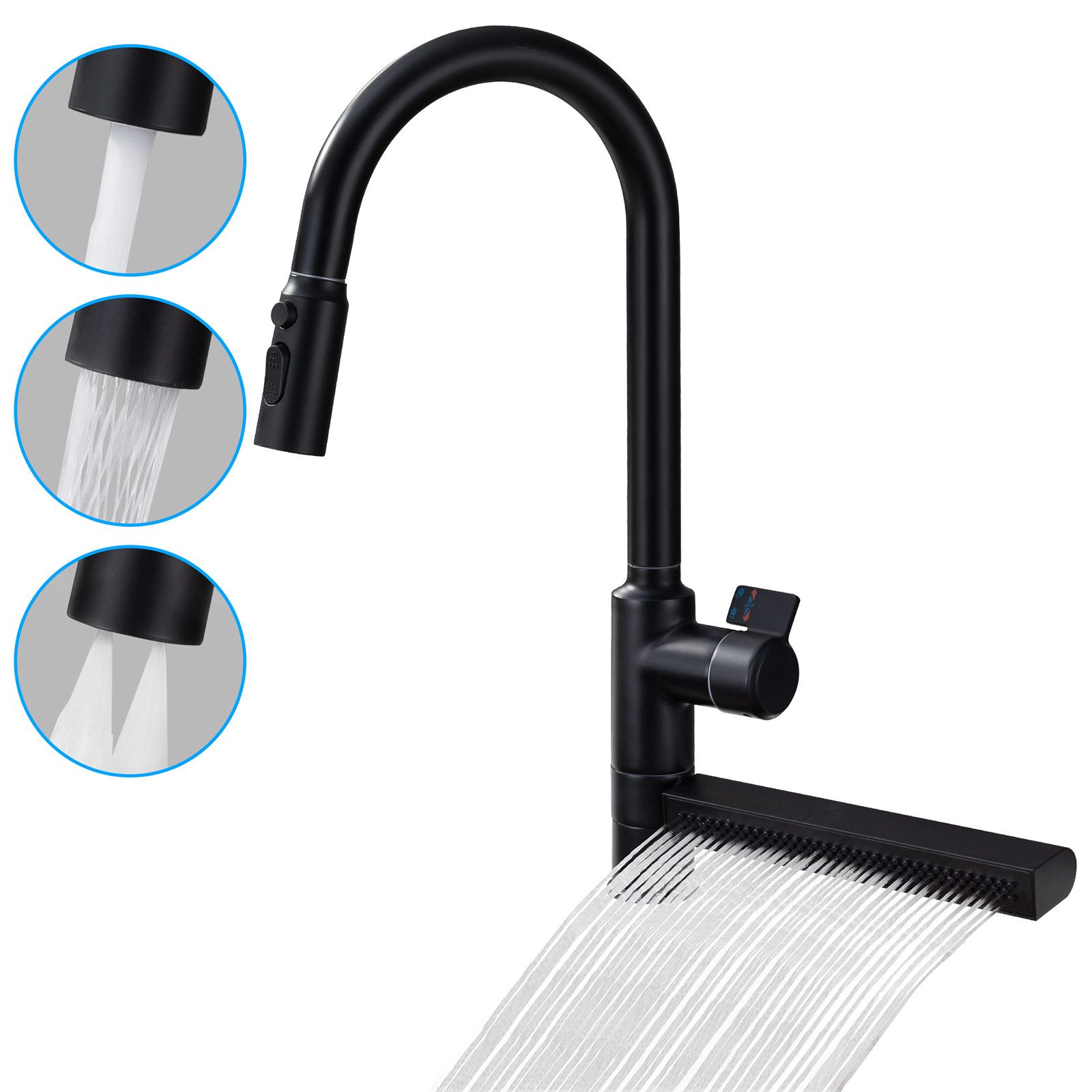 Hochwertige Küchenarmatur Schwarz – Ausziehbar, 3 Funktionen, drehbarer Seitenarm