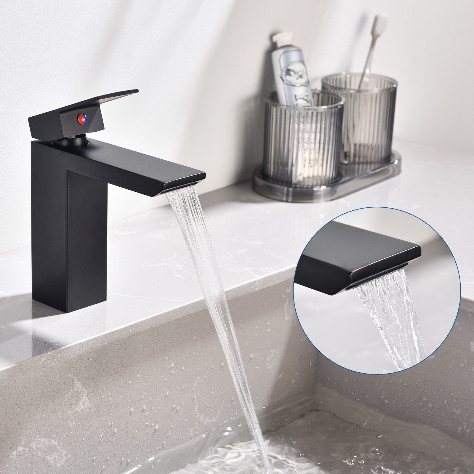 Typ: Schwarzer Wasserfall-Waschtischhahn