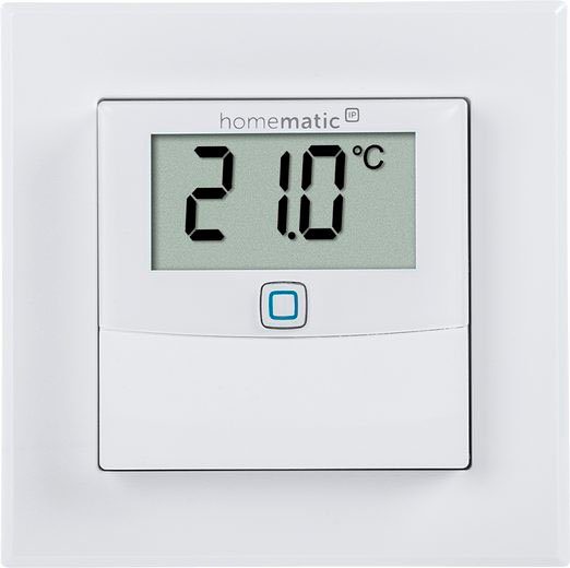 Lieferumfang | 1,5 V LR03/Micro/AAA Batterien 2x Schrauben 3,0 x 30 mm 2x2 Dübel Bedienungsanleitung Homematic IP Temperatur- und Luftfeuchtigkeitssensor Display - innen Klebestreifen Montageplatte Wechselrahmen |