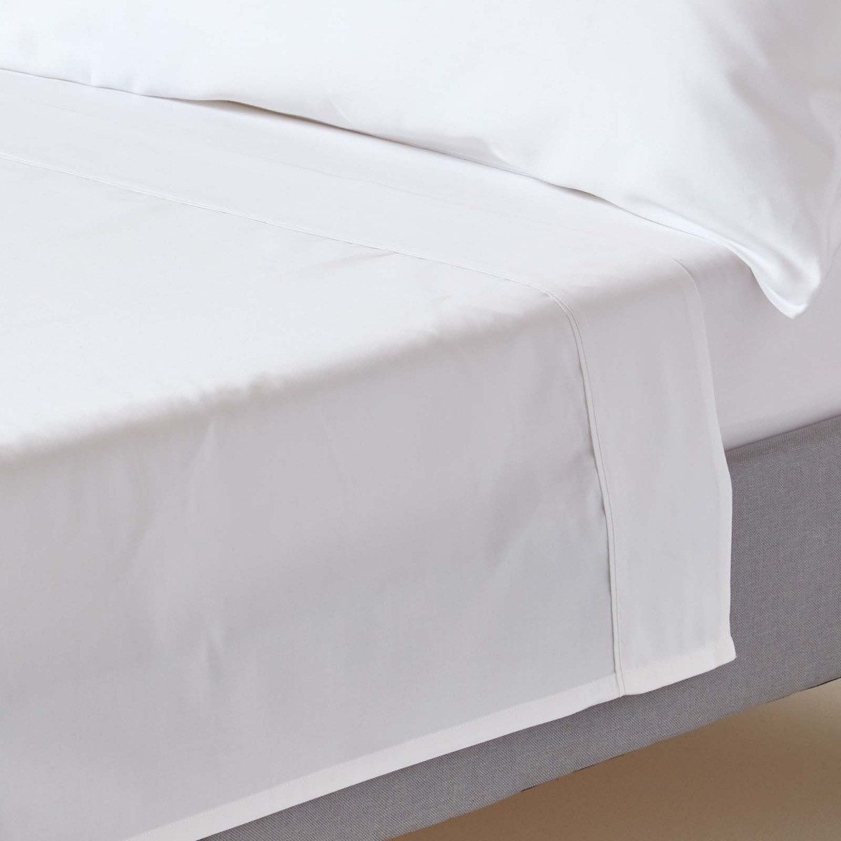 Luxuriös weiches und hautverwöhnendes weißes Bettlaken ohne Gummizug aus reiner Bio-Baumwolle – atmungsaktiv und temperaturregulierend, für erholsamen Schlaf zu jeder Jahreszeit. Размер ca.: 178 x 255 cm.