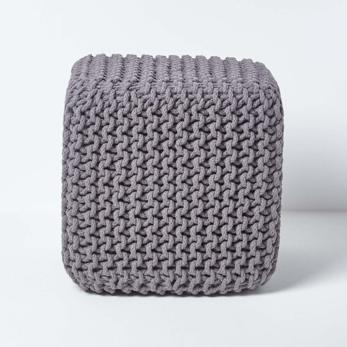 Egal ob als bequemen Fußhocker vor Ihrem Sessel, kleinen Ablagetisch für Kleider im Schlafzimmer oder als zusätzliche Sitzgelegenheit im Wohnzimmer, wenn Sie Gäste haben, dieser gestrickte Sitzwürfel verleiht Ihrer Wohnung Gemütlichkeit und setzt einen stilvollen Akzent. Das dezente Grau eignet sich toll zu vielen Einrichtungsstilen und kann mit vielen anderen Farben kombiniert werden.