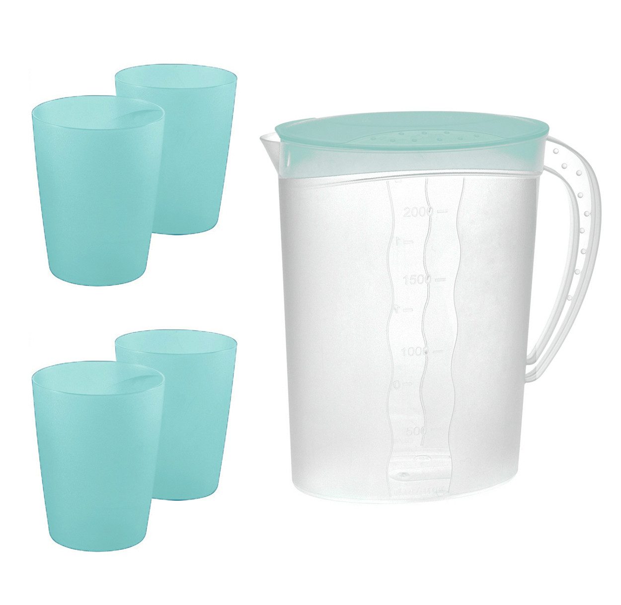 Beliebte Saftkanne mit Deckel in der Farbe aquamarin, einfach zu reinigen, spülmaschinengeeignet, Maße (LxBxH): 9,5 x 18,5 x 24,5 cm, Fassungsvermögen: 2 L