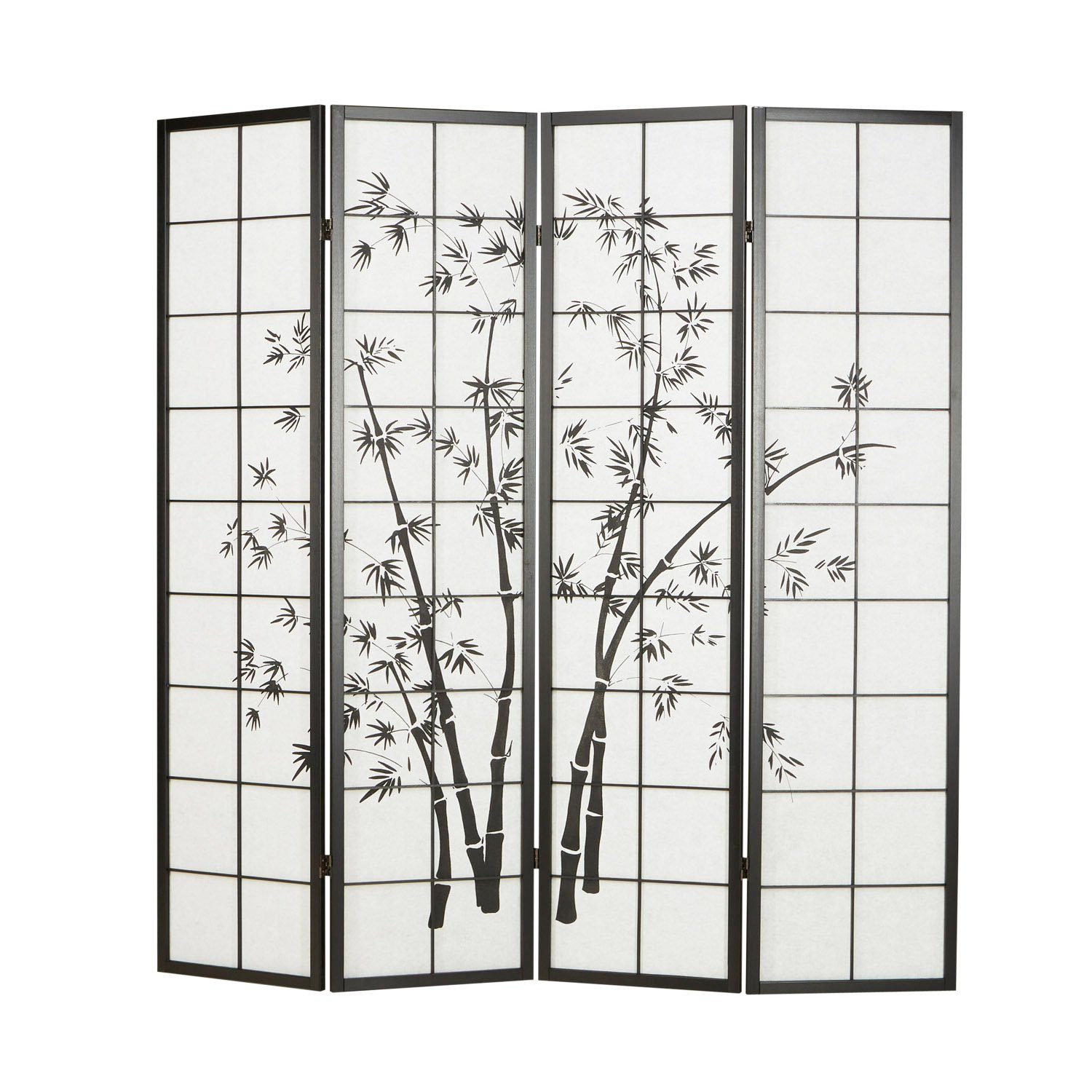 Raumteiler lackiertes Holz mit Bambus Muster. Paravent mit weißem Shoji Reispapier. Dekorative und praktische Wohnraumgestaltung. Der Paravent erzeugt durch seine natürlich schöne Optik eine Wohlfühlatmosphäre in jedem Wohnbereich. Schlichte geradlinige Holzstreben verzieren den Innenbereich des Paravents. Der Raumteiler ist nicht nur ein optisches Highlight sondern hat als Sichtschutz und Raumtrenner auch eine funktionelle Wirkung und schafft Privatsphäre und Ordnung. Mittels Scharniere, die in beide Richtungen klappbar sind, kann die Trennwand sehr leicht genau nach Ihren individuellen Wünschen in den Wohnbereich integriert werden. Die Gesamtbreite variiert je nach der Art und Weise, wie er angewinkelt wird. Sollte er einmal nicht genutzt werden, lässt er sich platzsparend zusammenklappen. Details: Paravent, massiver Holzrahmen aus 3,4, 5 oder 6 Elementen bzw. Fächern, mit Reispapier bespannt und Bambusmotiv bedruckt, zusammenklappbar, leicht aufzustellen, stabiler Stand in angewinkelter Position, für den Innenbereich, Scharniere in beide Richtungen drehbar, Material und Farbe: Rahmen aus Holz in Natur lackiert, Innenbespannung aus Shoji Reispapier in Weiß mit Bambus, Maße: Höhe: 179 cm, Tiefe: 2,0 cm, Breite der einzelnen Elemente: 44 cm, Lieferumfang: Paravent fertig montiert, Lieferung erfolgt per Paketdienst. Der Raumteiler ist ein individuelles Wohnaccessoire, welches nicht nur optisch ein absoluter Hingucker ist sondern auch zweckmäßig in jeden Wohnraum passt. Der Raumteiler besticht durch seine natürlich gehaltene Ausführung. Verschiedene Ausführungen und Breiten haben wir ebenfalls in unserem Меню.