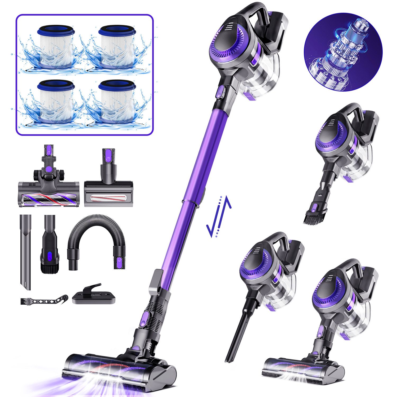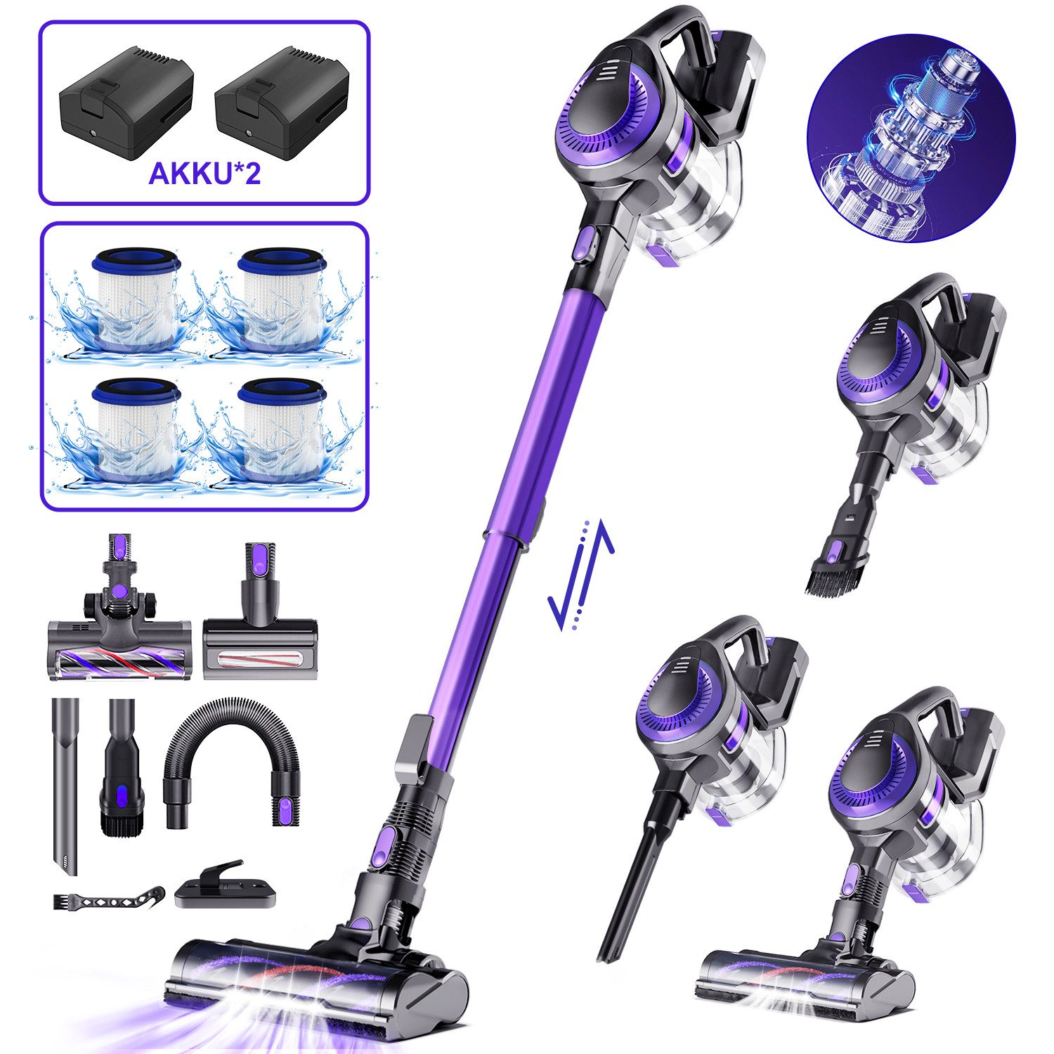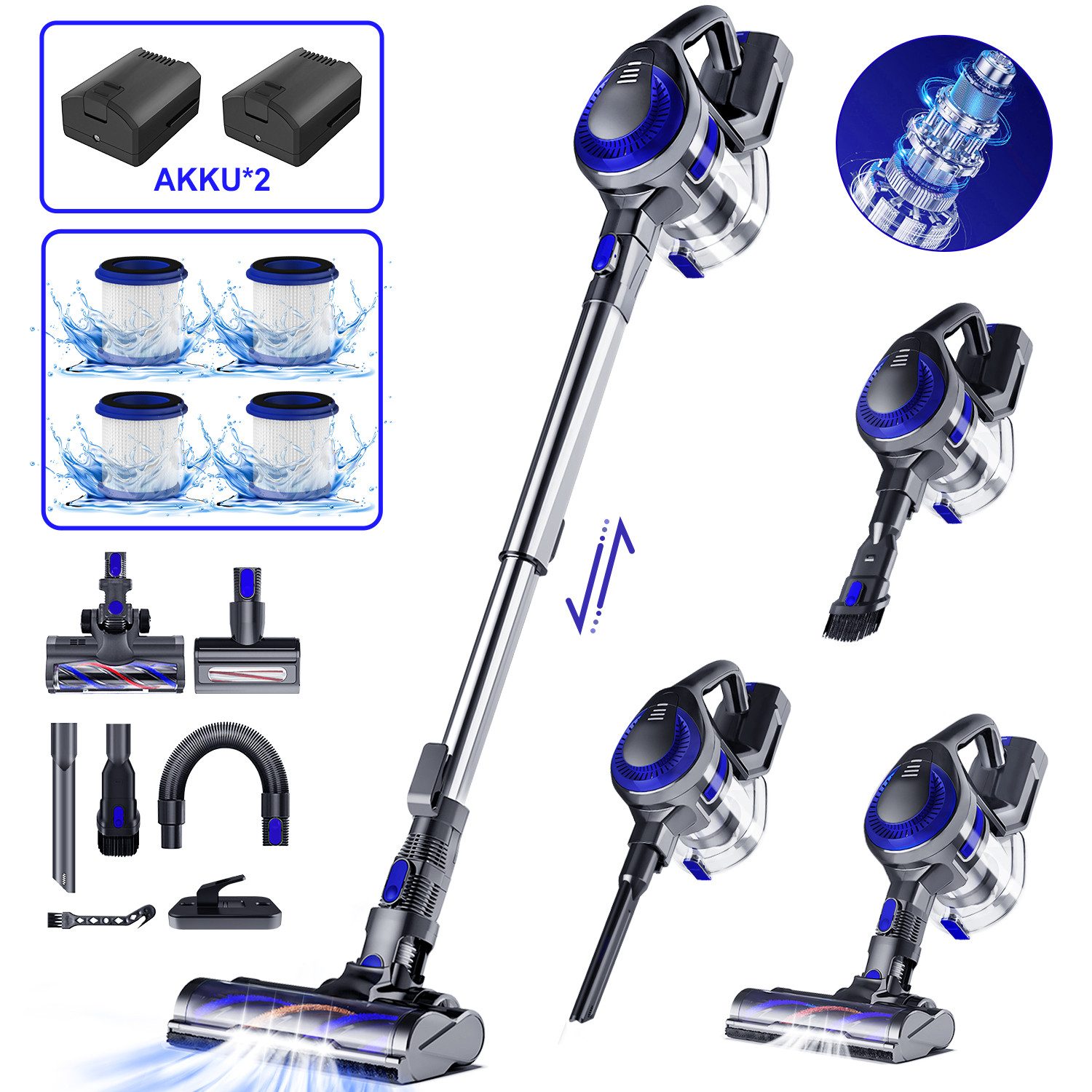 Abnehmbare Teile | Hauptgerätkopf Akku Teleskoprohr Hepa-Filter Bodendüse |