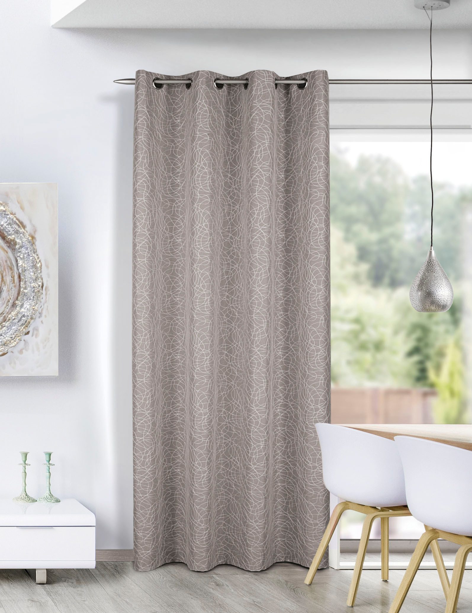 Hinweis Aufhängung | Aufhängung erfolgt mittels Ösen (Durchmesser ca. 35 mm) an der Gardinenstange. |