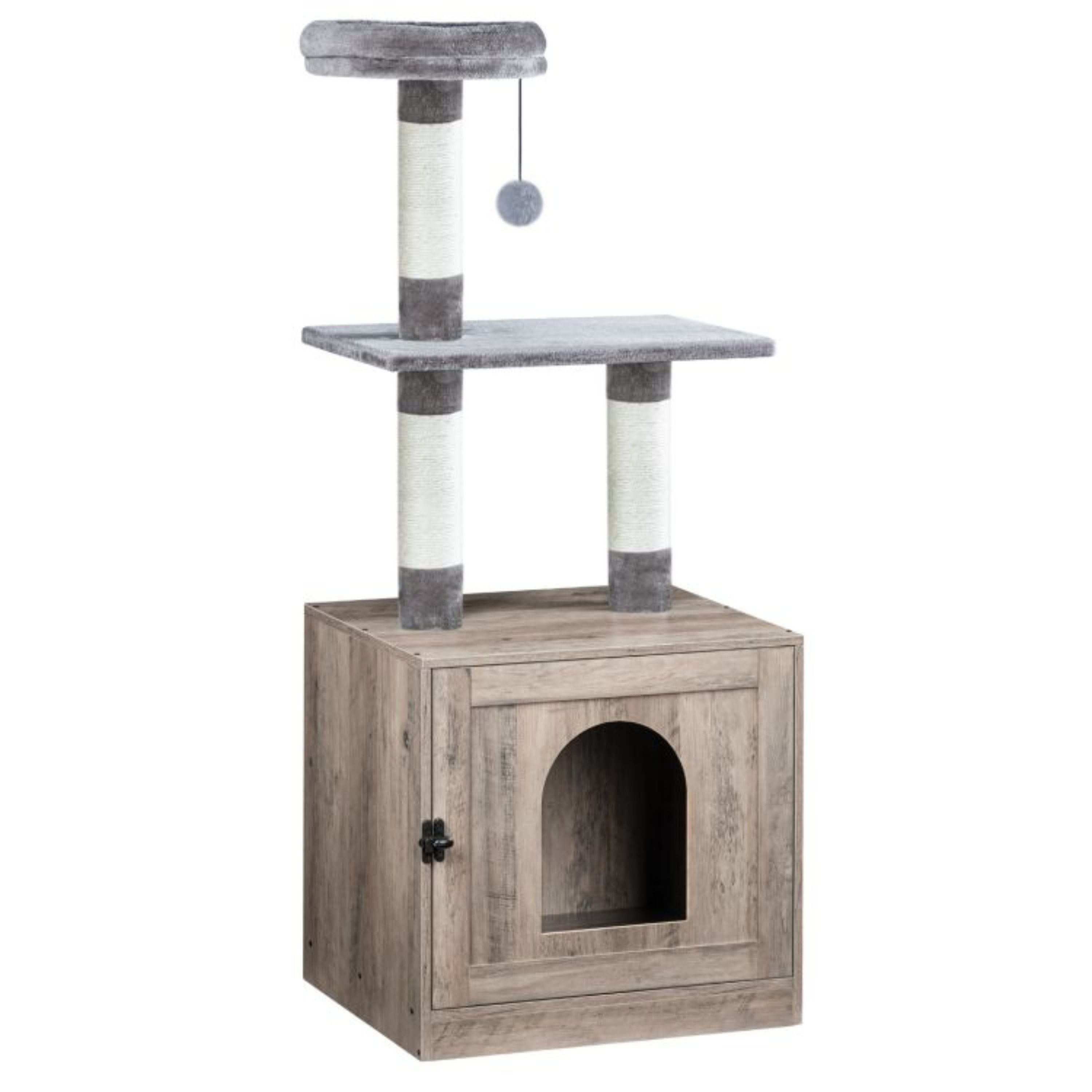 Dieses Katzenklo-Gehege ist eine Kombination aus Katzenhaus und Kratzbaum